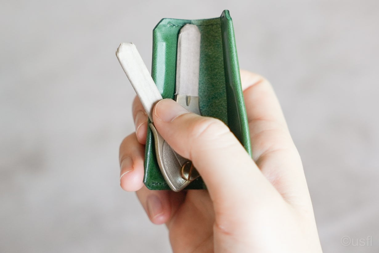 ※新品のときは、革が反発して閉じにくい場合もございます。お使いいただくうちに閉じるようになります。