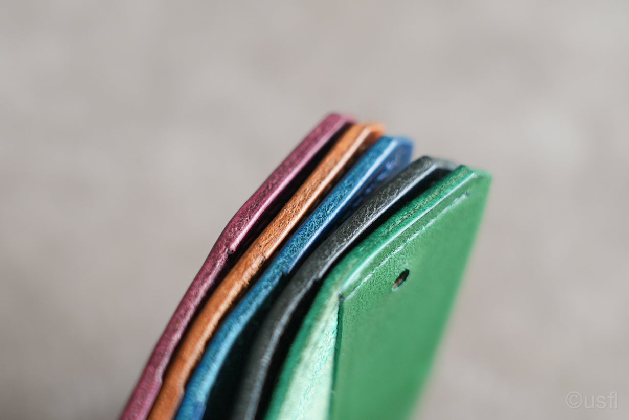 小さい財布「mini」でも採用した高級素材です。イタリアの革らしい、鮮やかな5色からお選びいただけます。