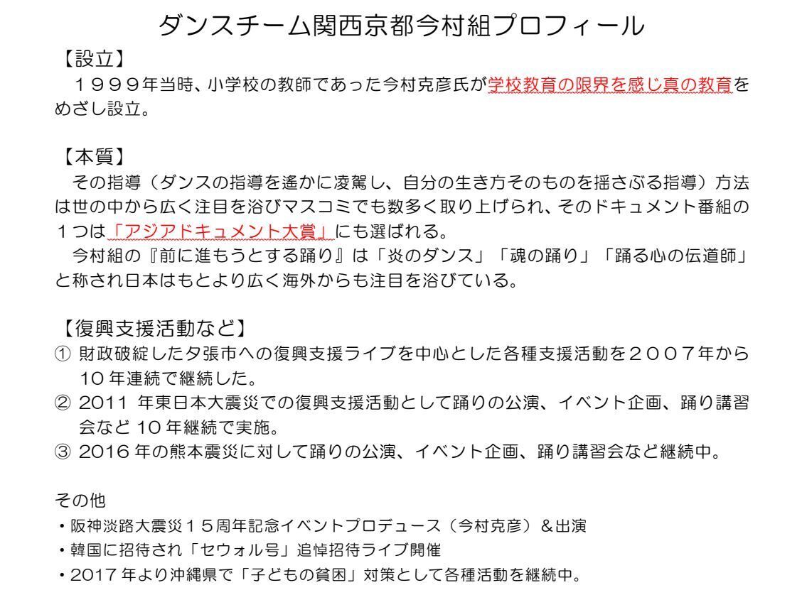 ダンスチーム関西京都今村組 総代表