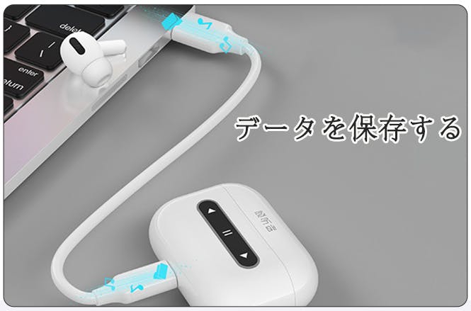 ① 充電ケースのMP3ボタンを2秒間長押しして、青いライトが点滅します。