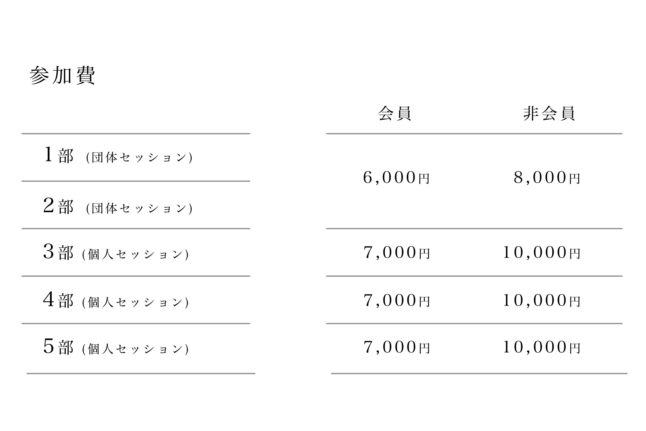 基本的な参加費は以下になります。