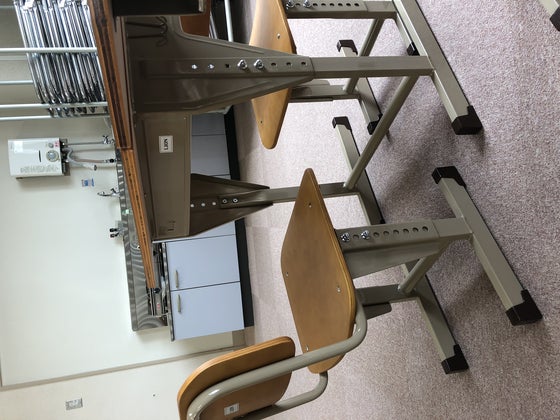 今回提案している新しい台形机は、反対側からも座れるのが特長です。
