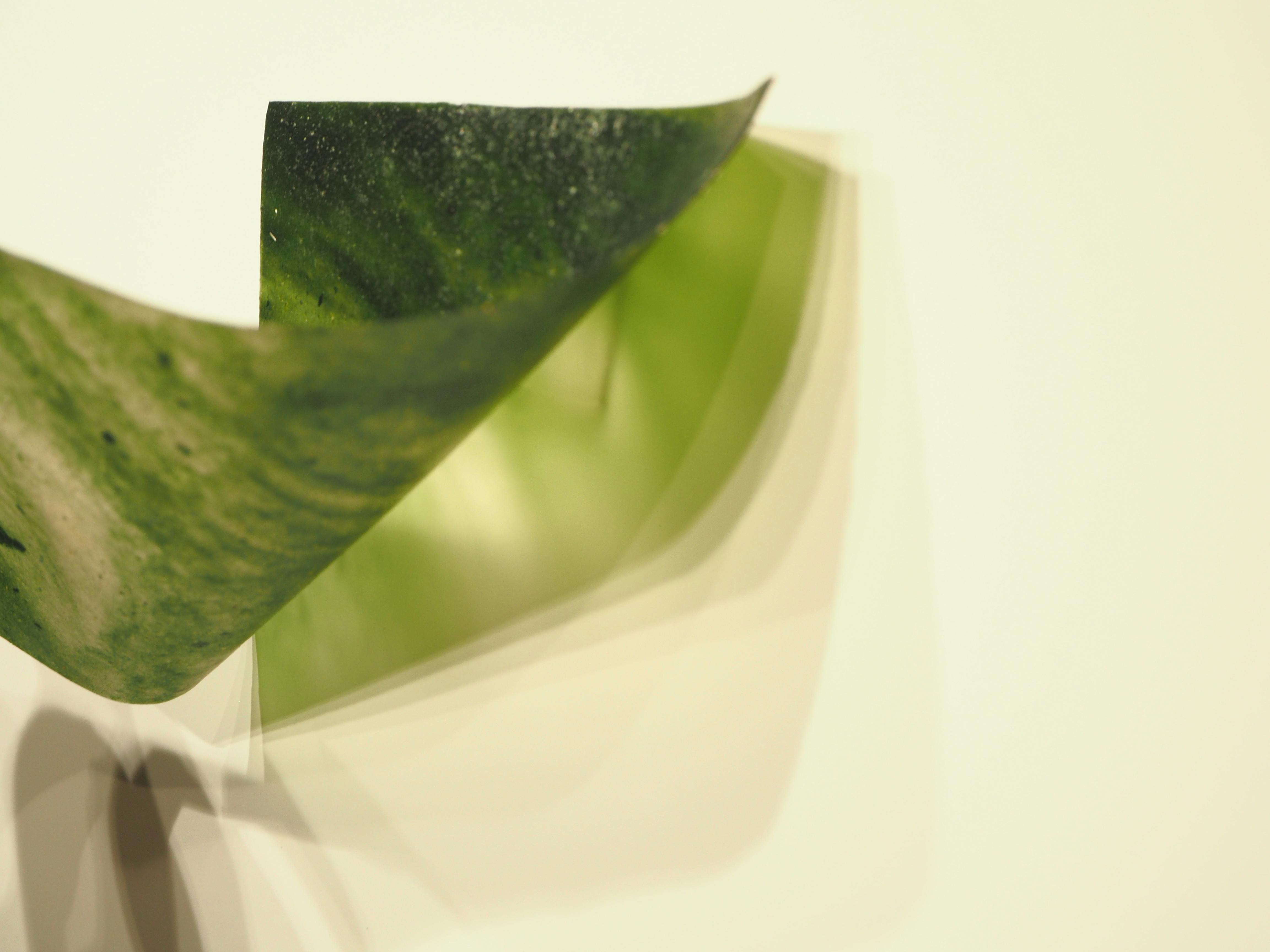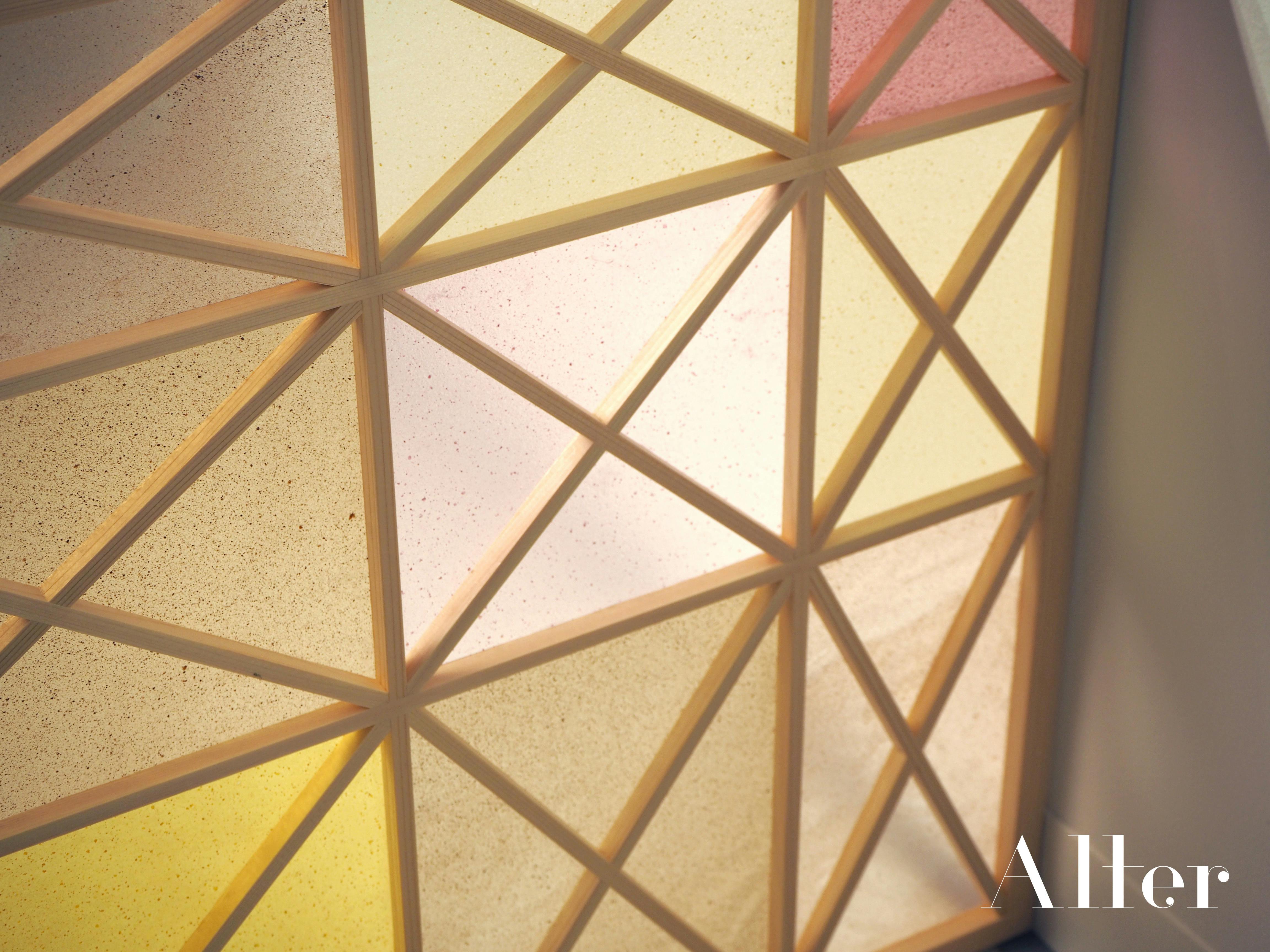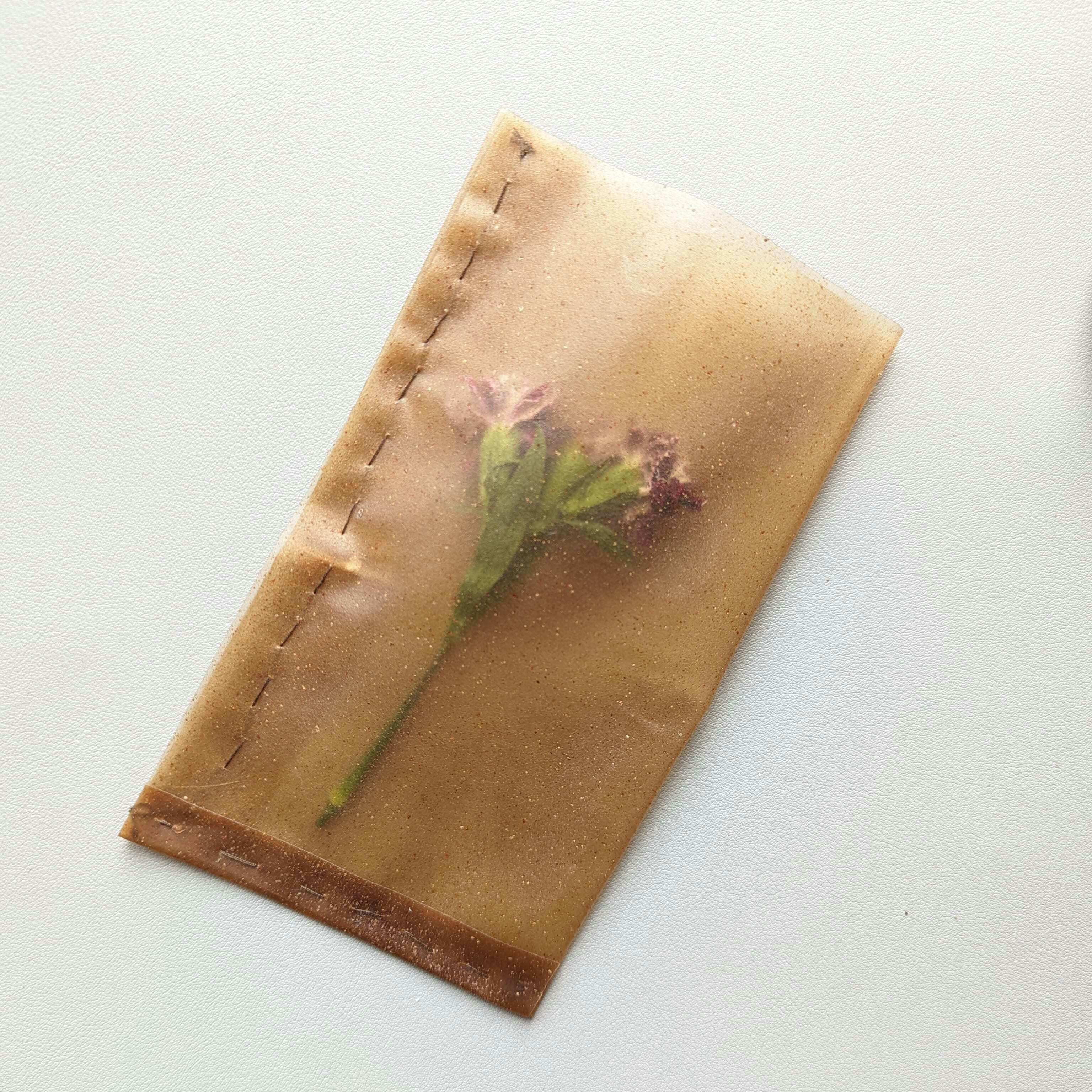 Alterの素材は、0.1mm~の薄いシートから、固体までデザイン制作可能です。ビニールのような素材は、水に強く、透過率が高い性質を持ちながら、生分解性の新素材となります。また、野菜や果物の残渣を混ぜることで、一般的な海藻由来の素材より強くなり、豊富な色味や触感のバリエーションを作り出すことが可能です。