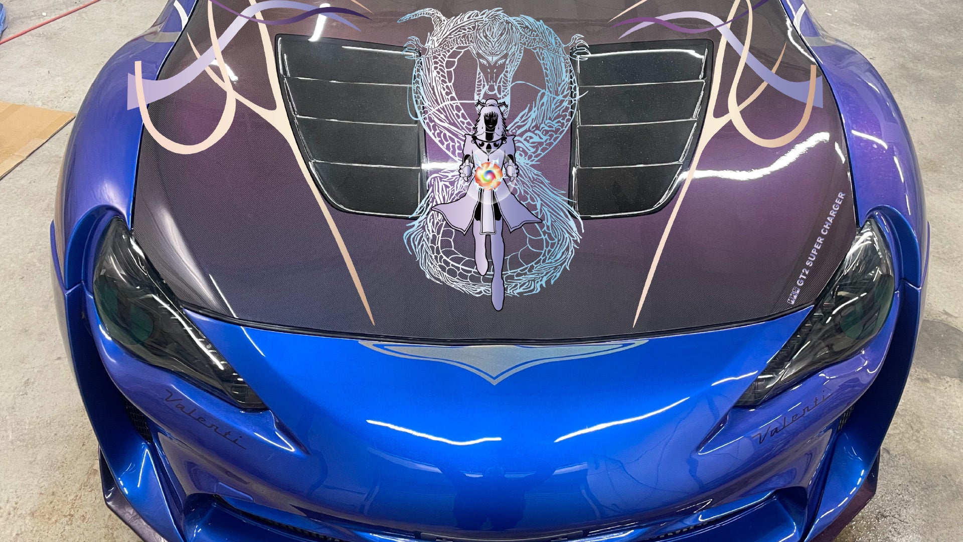 そこで、通称痛車と呼ばれる車好きオタク文化の活性化、日本の古きデザインを蘇らせる、さらに、自分だけの世界に一台しかない車を作り上げたいと思い、このプロジェクトを発足させました。