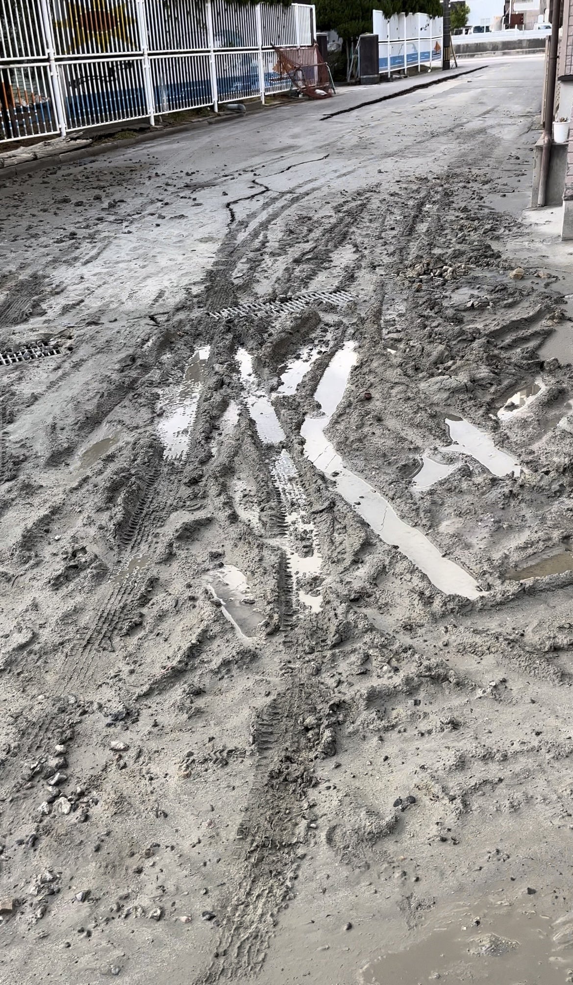 揺れが落ち着きすぐに窓の外を見たら、道路が割れ、液状化が始まり、泥水が車まで来ているのを見てすぐに高台まで避難しました。