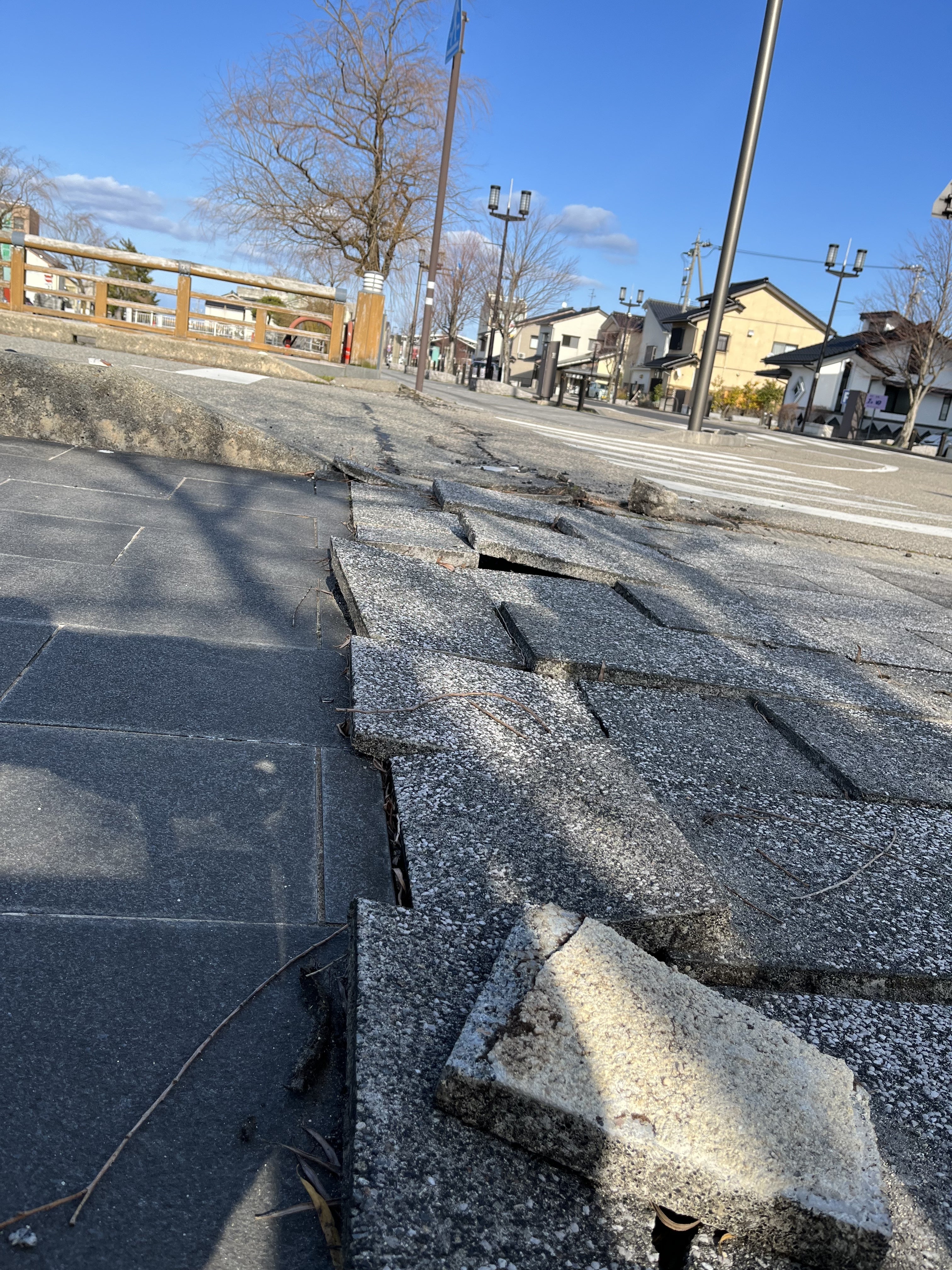 全壊している家や、マンホールが隆起して変わり果てた街並みをすすみ、