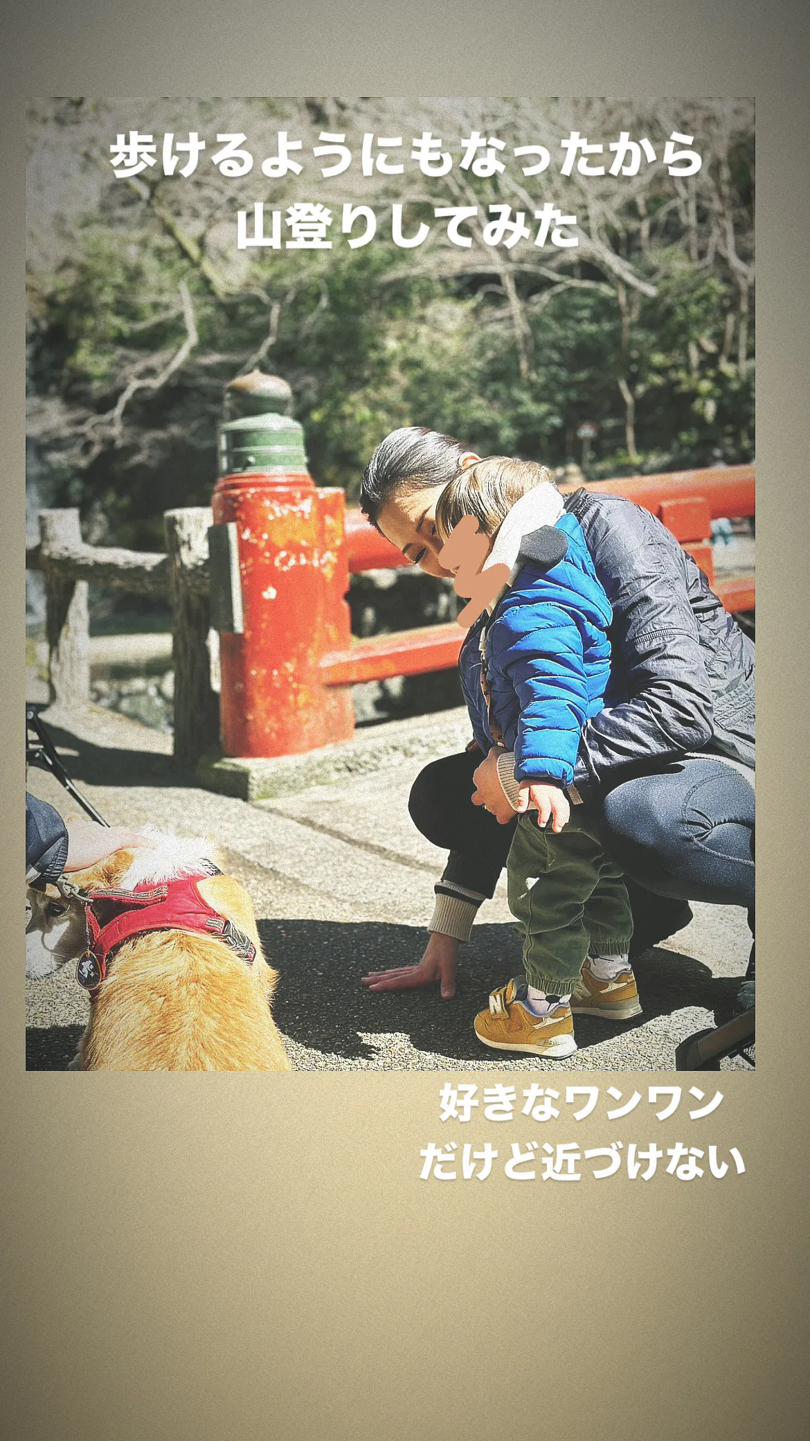 2024/03/14 07:00あと6日になりました。達成率80%をお陰様で超えさせて頂き本当にありがとうございます。皆さんに使用するの楽しみ!届くの楽しみ!という声を頂き早く届けたいという気持ちばかり出てきます。そんな中上手に歩けるようになった息子を連れてすこし山登りに行ってきました。犬が、好きで興味はあるが近づけずこの距離から近づくことが出来ず。でも手を伸ばそうとするAMOちゃん。仕事仲間(勝手に仲間と言わせて頂いていますが先輩です)からも電話を頂いたり。色んな方から毎日お声がけありがとうございます。最終日迄、あと少し思いっきってやっていきたいと思います。引き続きよろしくお願い申し上げます。 もっと見る