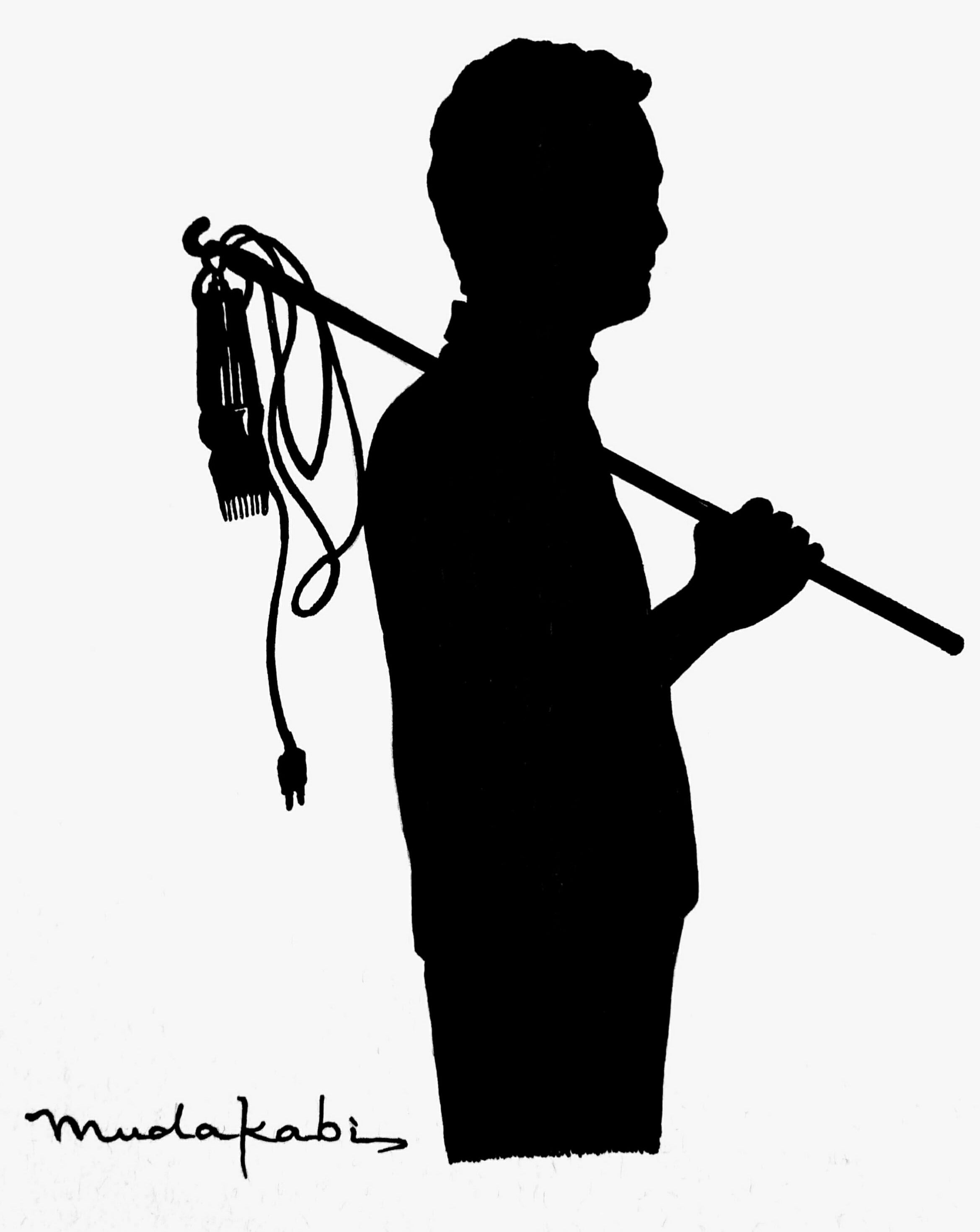 知人に描いてもらったバリカン担いだわたし