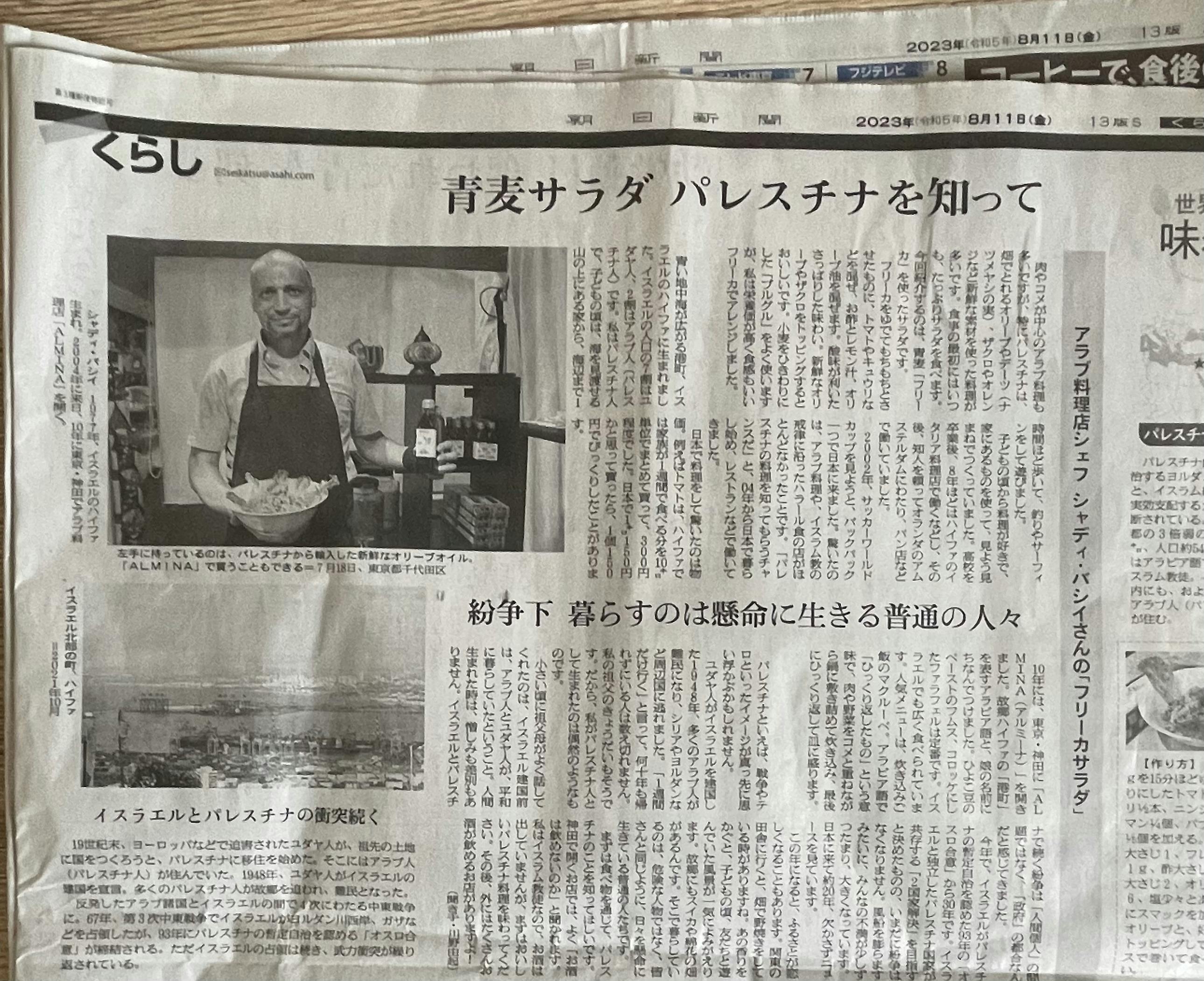 アラブ地中海には、古くから育まれてきた食文化があります。神田アルミナ店は、歴史の中で育まれてきた地中海家庭料理を提供する、東京初のアラビアンレストランです。食材は100%ハラール食材を使用しています。2010年2月のオープン以来、神田アルミナ店は本格的なアラブ地中海料理が楽しめるお店として、ネットやメディアでも取り上げられており、「こんな料理は初めて」「オリーブオイルが素晴らしい」など、多くのお褒めの言葉をいただいています。ヘルシーで美味しい地中海料理を、より多くの日本の方に味わっていただきたいです。