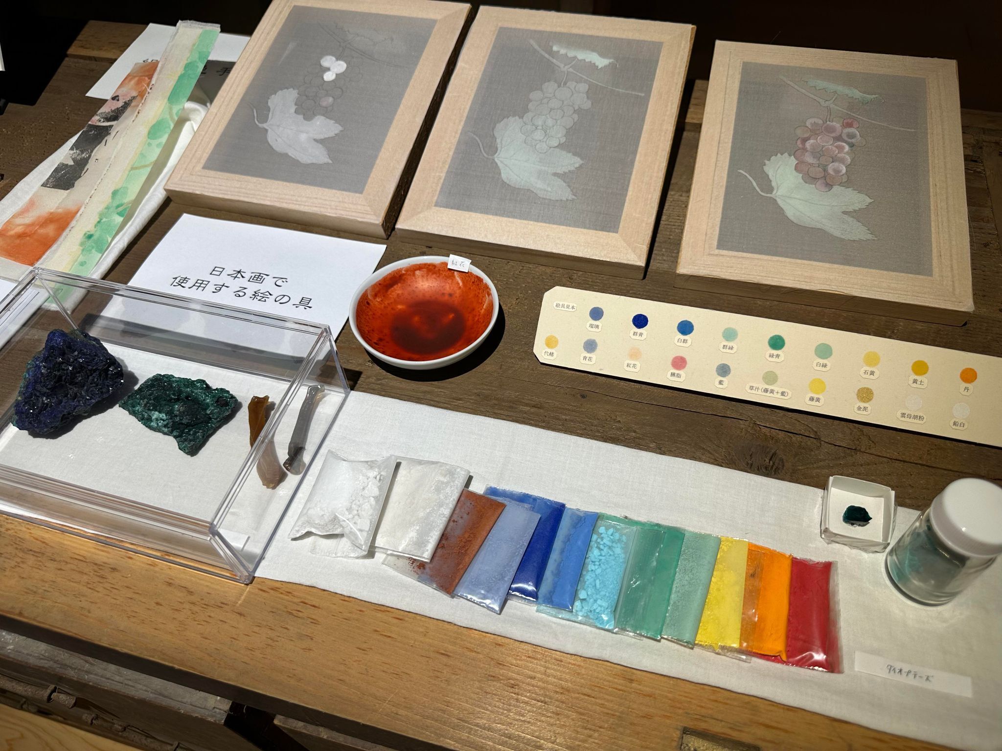 会場には、谷中さんが絵で使っている日本画の顔料や画材、技法が分かるようなコーナーも設けています。