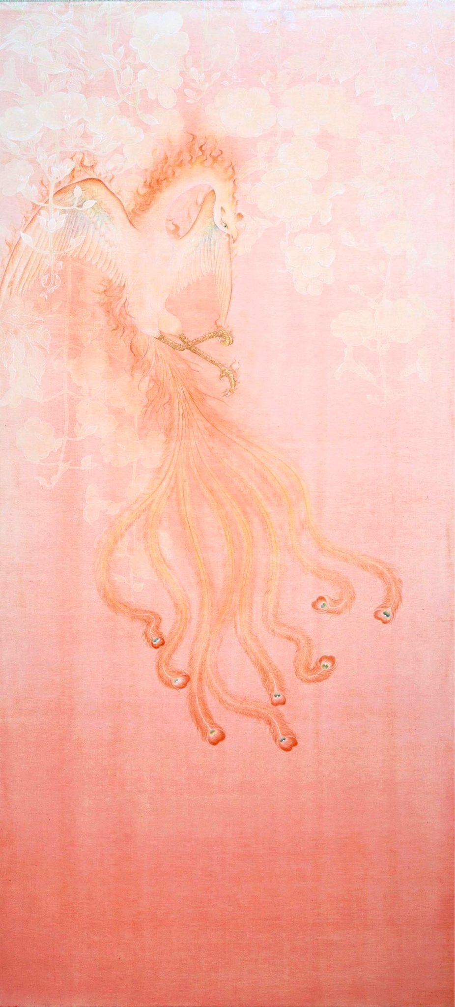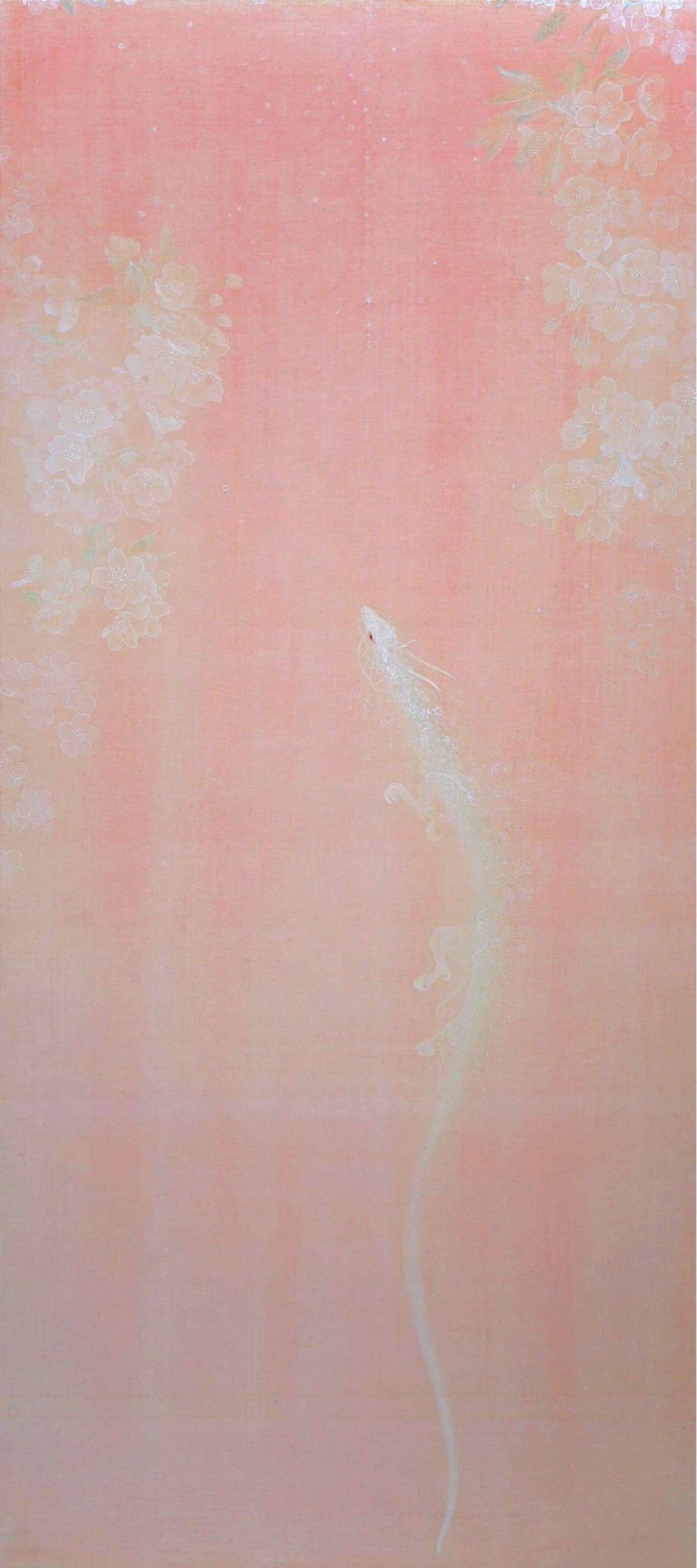 谷中美佳子さんの絵は、絹本と呼ばれるシルクの布に、日本画の画材で描かれた非常に繊細で美しいものです。