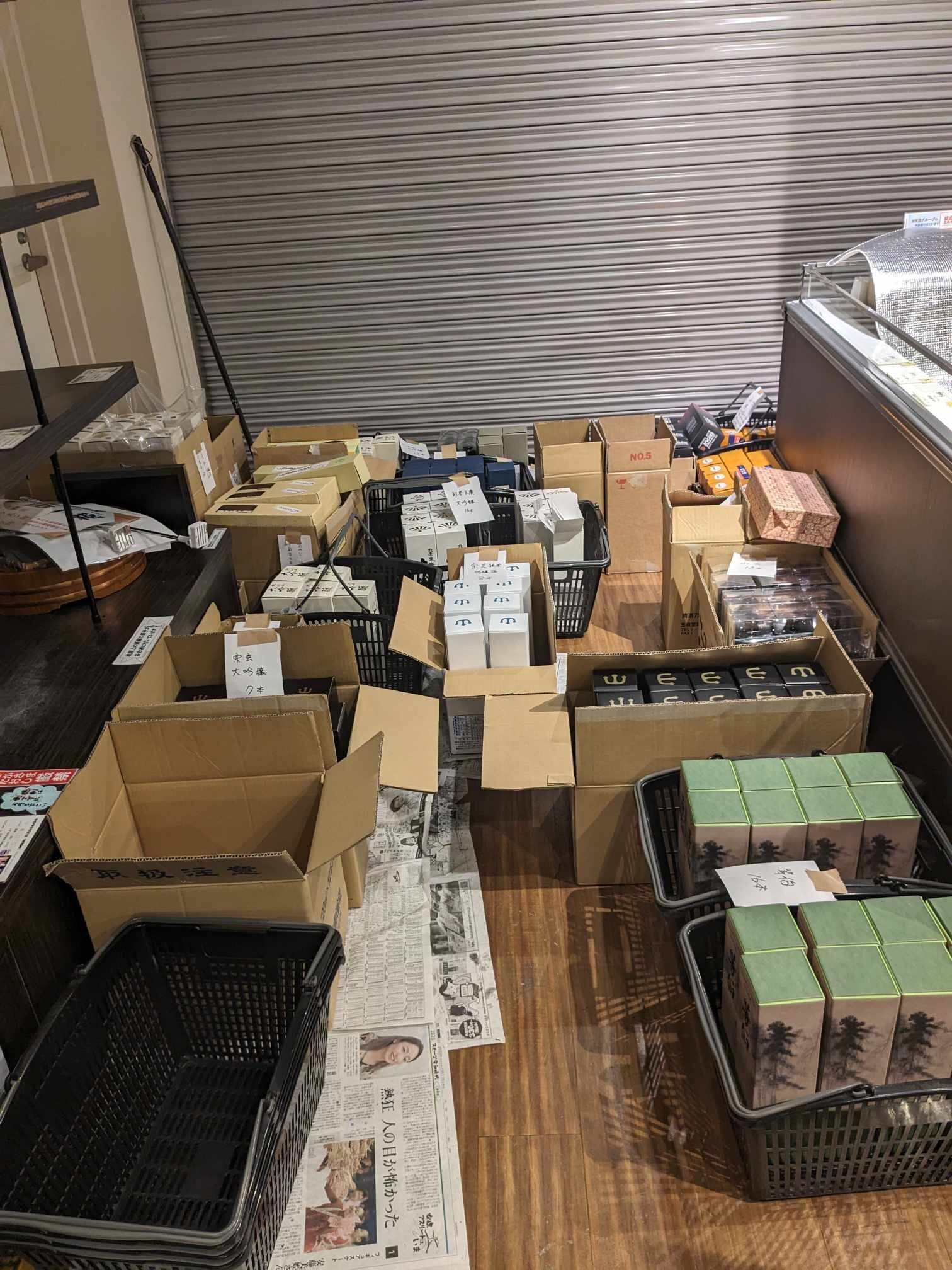売れる予定だった酒は、水道、温泉や施設の修復の予定が立たないため、回収してきました。大量の在庫を抱え、頭を抱えています。