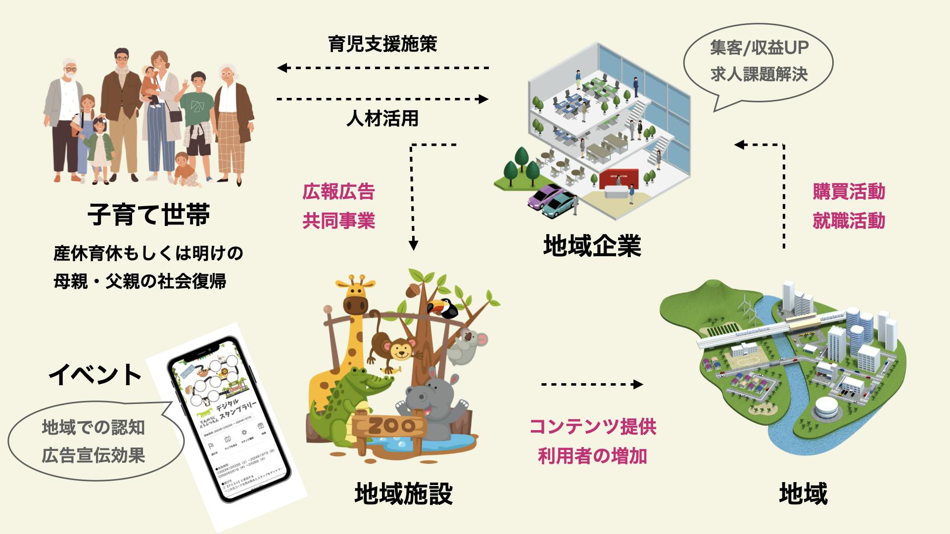そのプランの一つが地域施設と地域企業、住民の循環モデルです。人が集まる地域施設で地域企業が広告をして認知度UPをする。そうすれば収益と人材を獲得できる!そして働く人へ子育て施作を還元出来る!きっとそうなる!絶対そうなる!と私は考えて今回の企画を考えたのです。