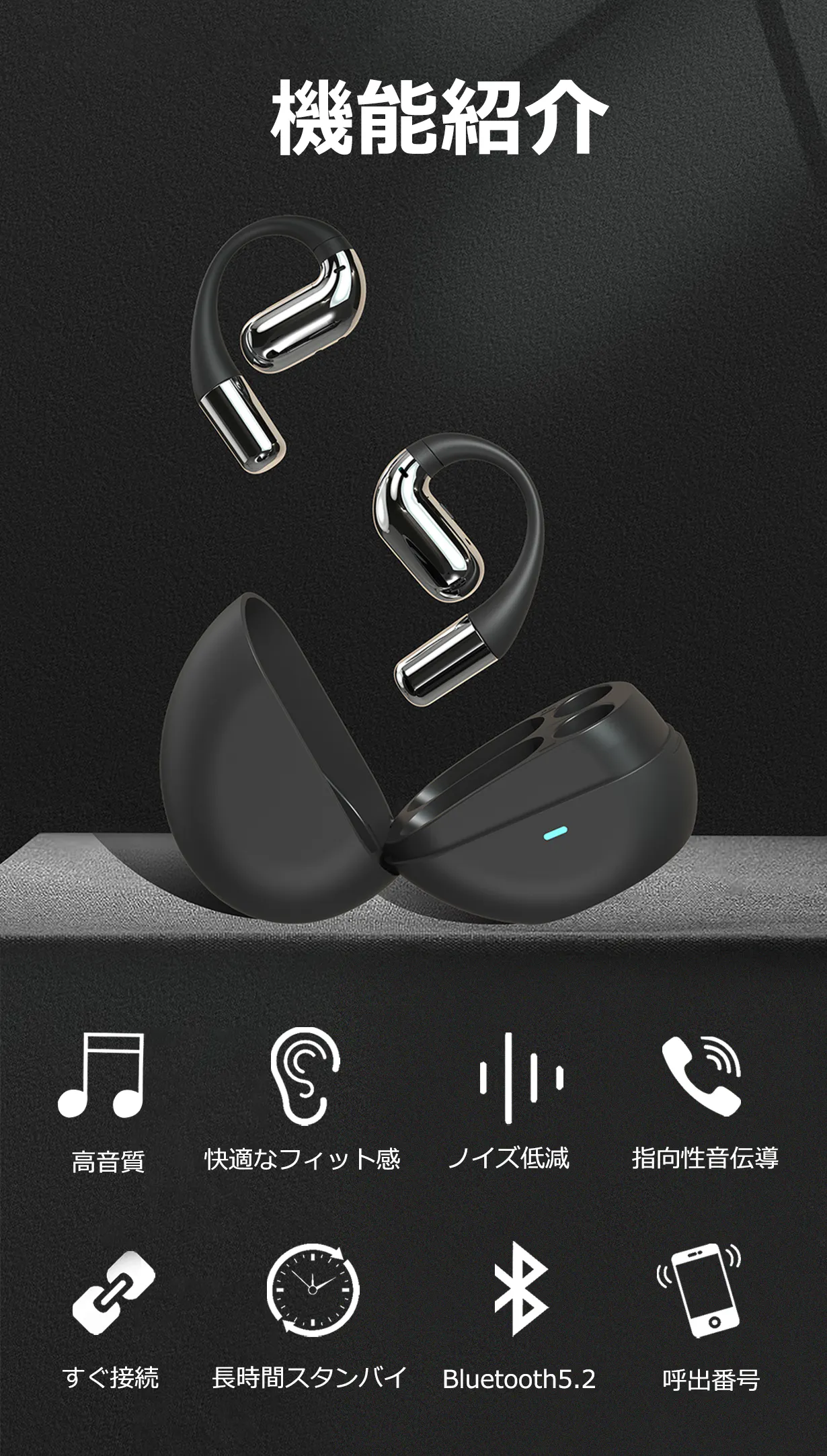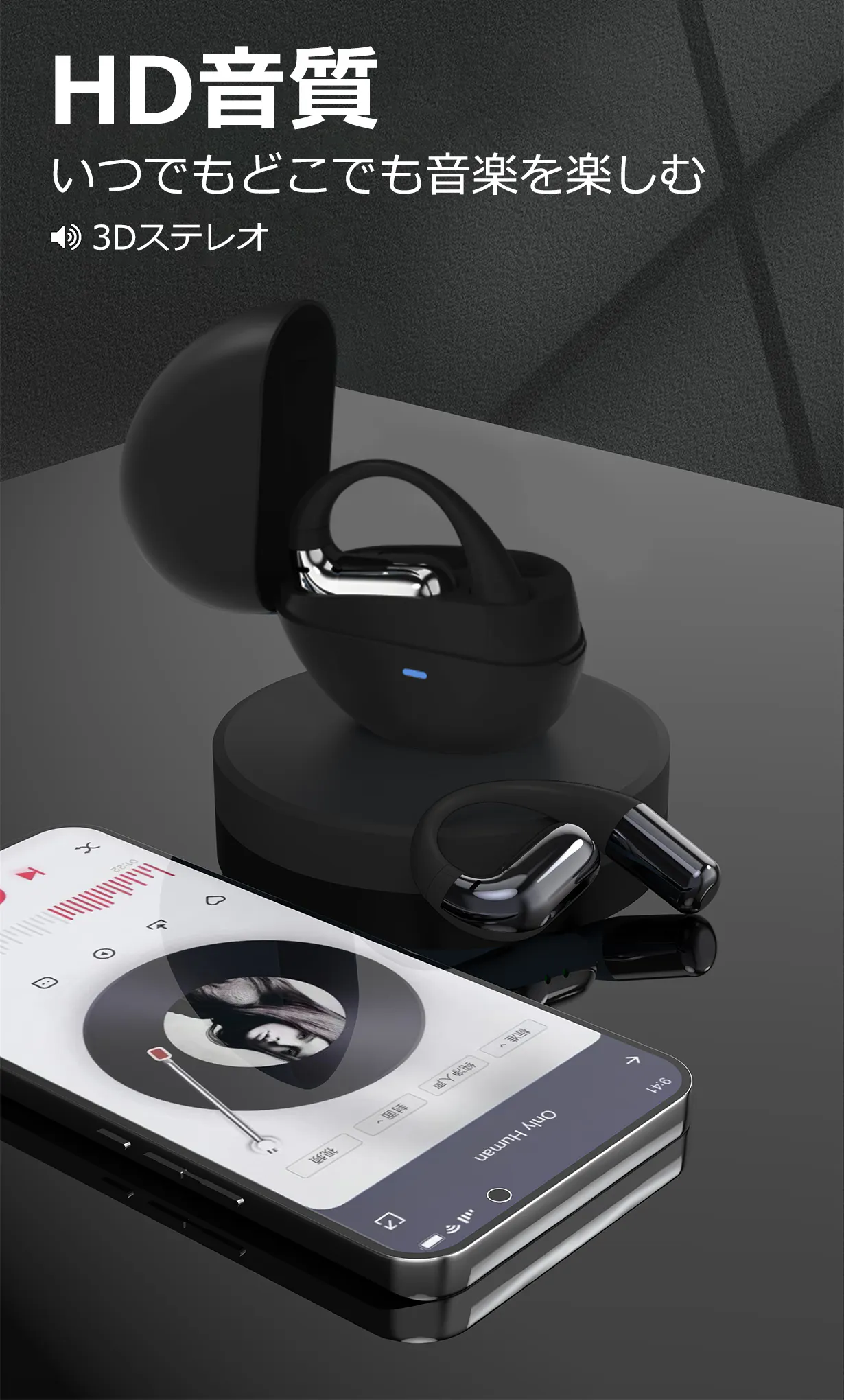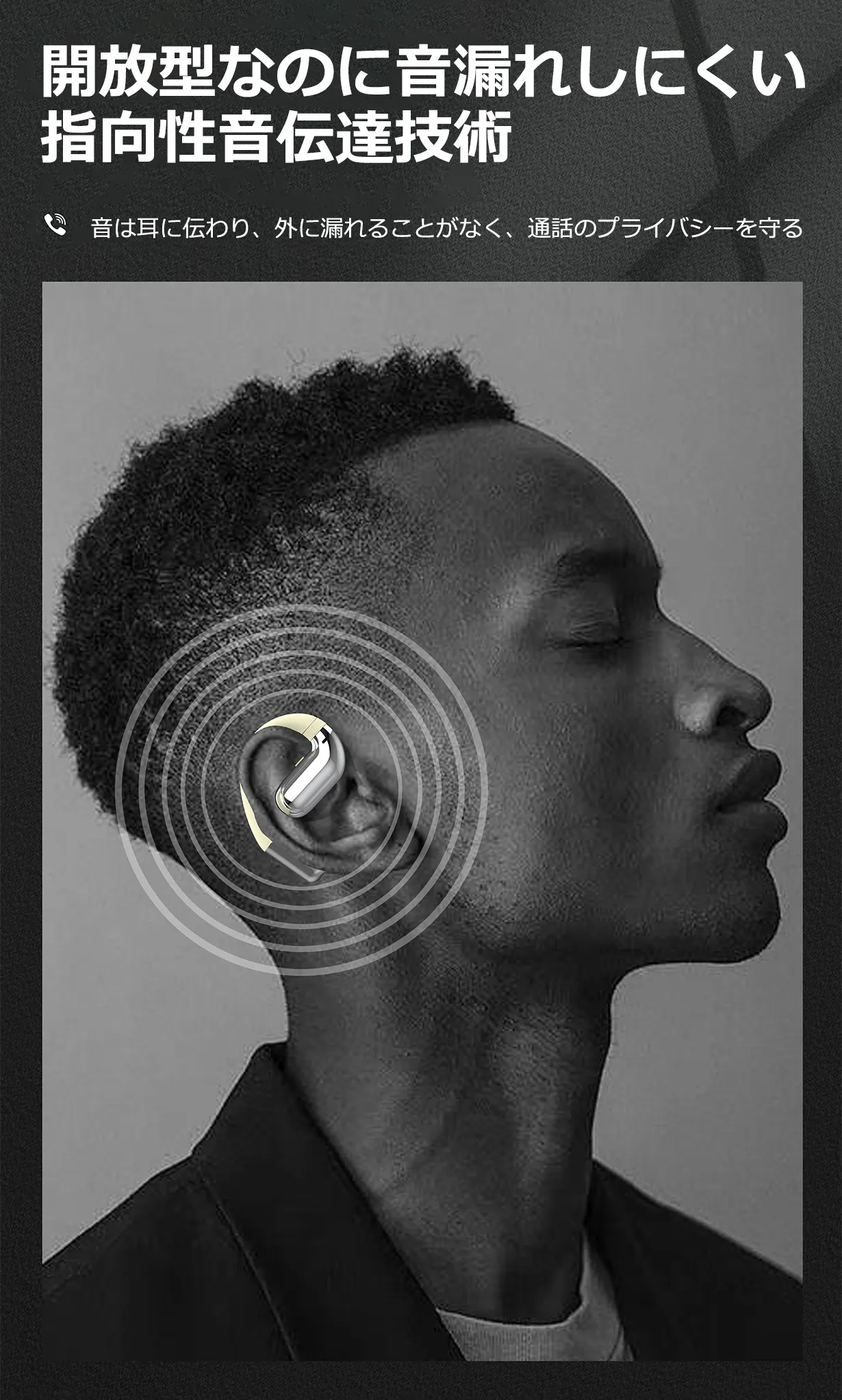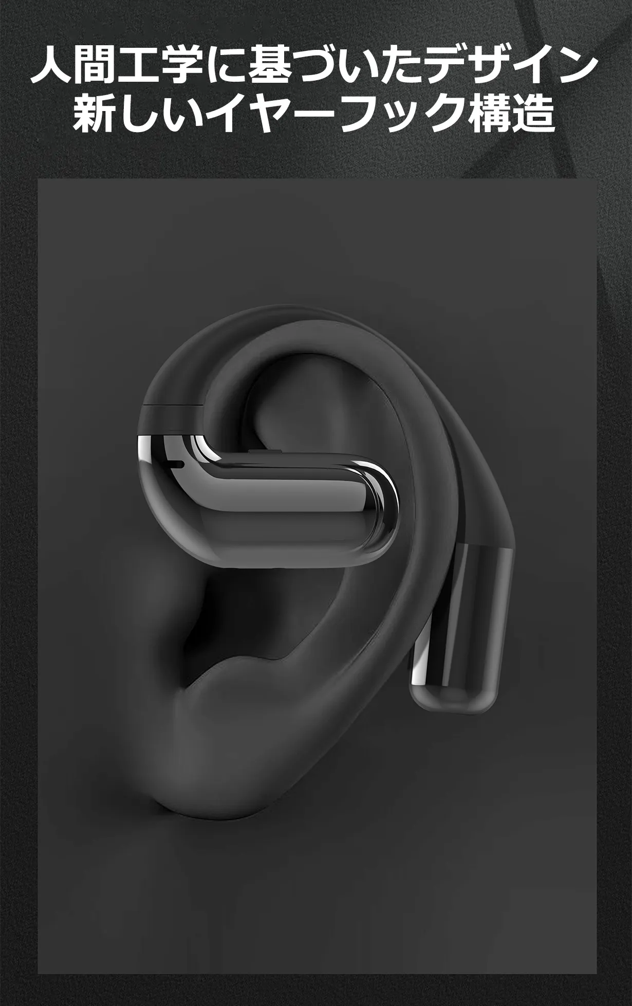 様々な耳に適しており、耳掛けの外形で、長時間の装着を可能にするために、重量をわずか9g(片耳)に軽量化しました。耳につけていることを忘れるほど快適感です。