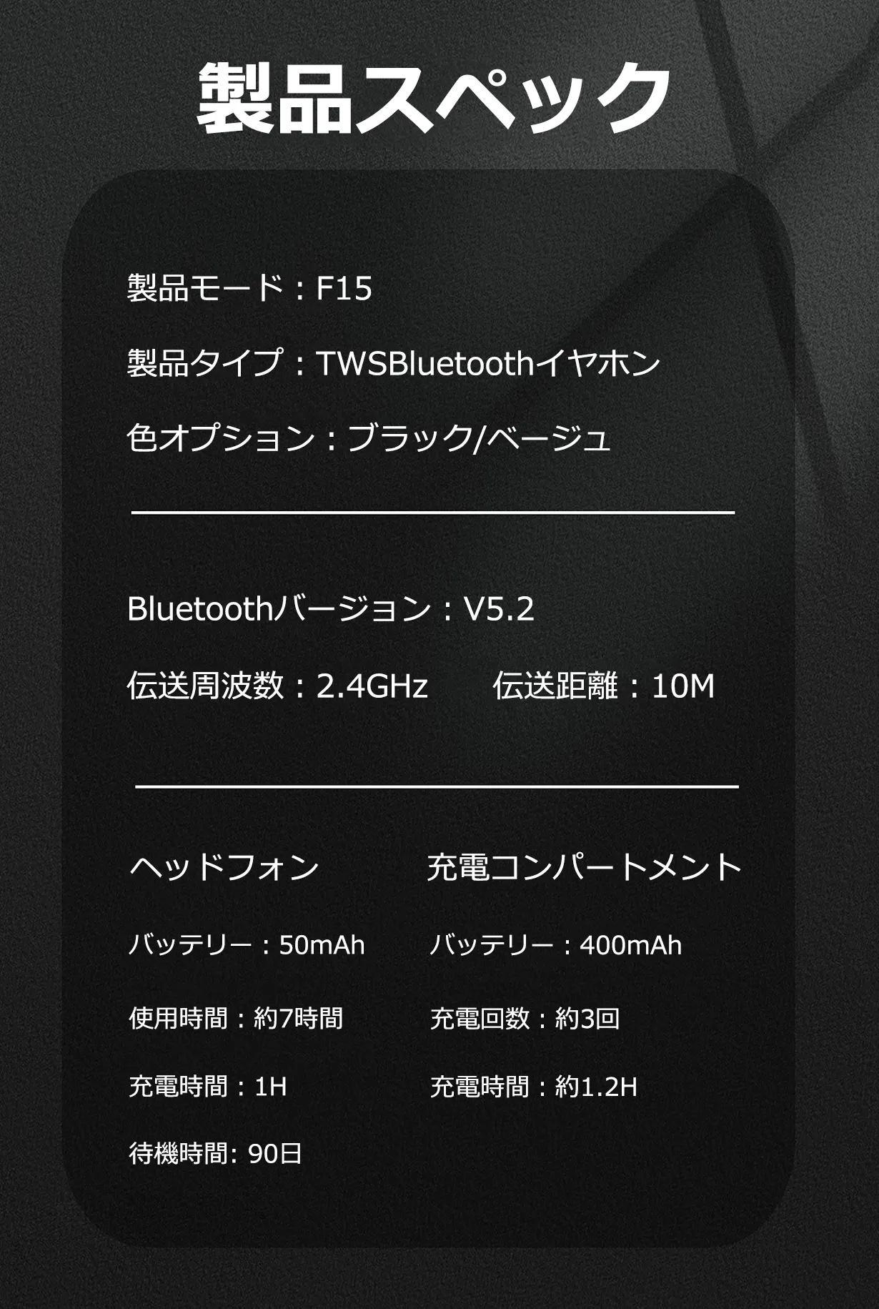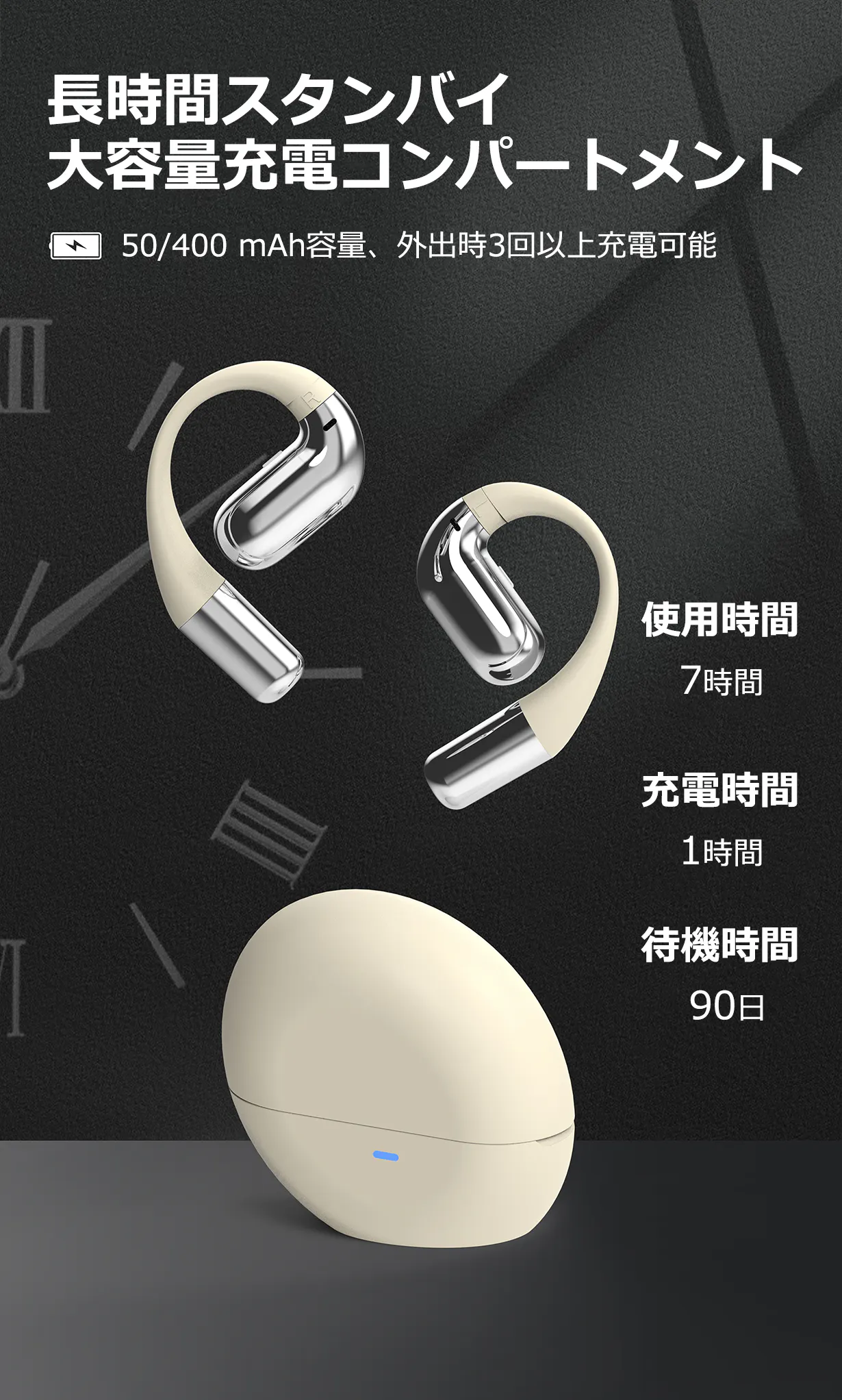 本体80%音量場合は7時間使用できます(テストの参考時間)。