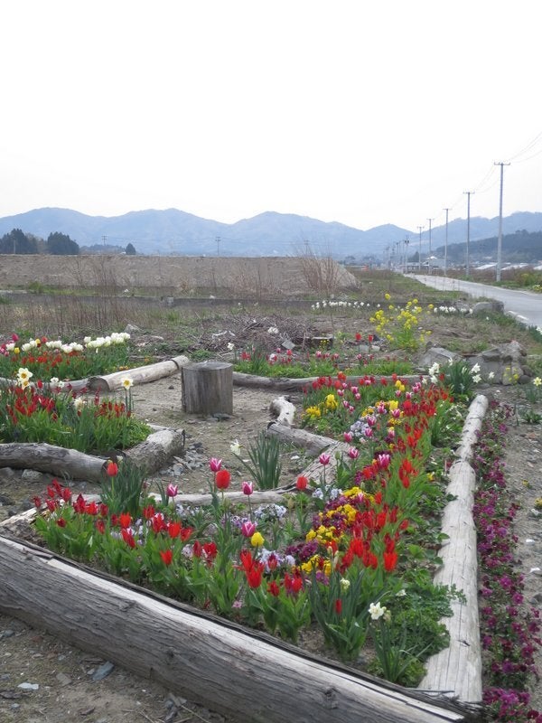 東日本大震災後、私たちが取り組んだ宮城県山元町の坂元駅前手作り花壇(2015年4月)