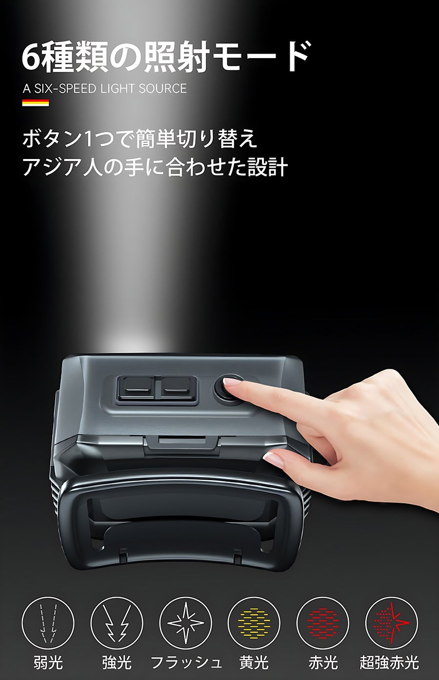 本製品は3色・6種類の照明モードを搭載しており、用途によって使い分けることができるので、夜間のアクティビティが今まで以上に快適になります。