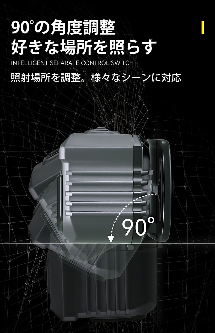 照射角度を最大90°まで調整できるので、頭を動かさずに好きな場所を照らせます。