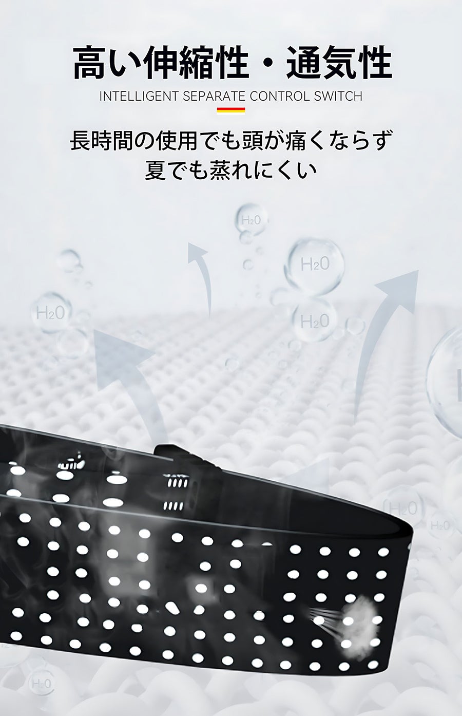 ヘッドバンドには伸縮性・通気性に優れたナイロンを使用しており、長時間の使用でも頭が痛くならず、また夏でも蒸れにくく快適です。