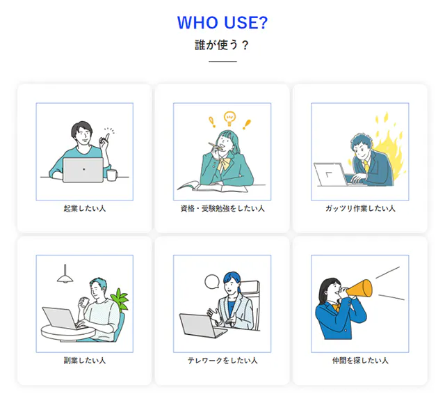 飲食と会話ができないスペース。「仕事や勉強に集中したい」方におすすめです。