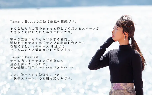 Tamano Beads(タマノビーズ):若者の自己表現、地域活性化・魅力発信等を目的とし、中高大生が主体的にイベントを企画・運営する玉野市を中心とした学生ボランティア団体