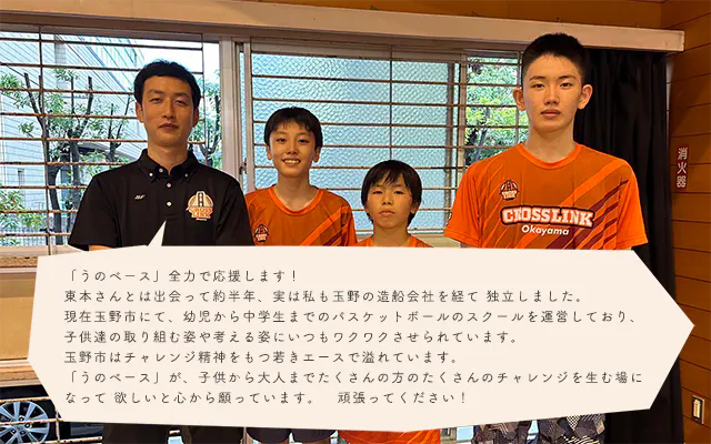 なので うのベース には、社会に出ることへの希望や不安を感じている若者たちにも足を運んでもらえるようアプローチしたいと考えています。チャレンジする大人が身近にいる環境は、玉野の若者にとってきっと将来の選択肢を広げるきっかけになるはずです。