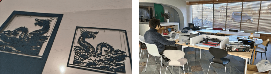 新しくCO2式の大型レーザーカッターを導入し、作成できる商品の幅を広げます。同時に3Dプリンターやレーザーカッターを地域の人々に開放したファブ施設として運用し、技術の浸透やものづくりをする学生と地域住民の交流拠点を目指します。