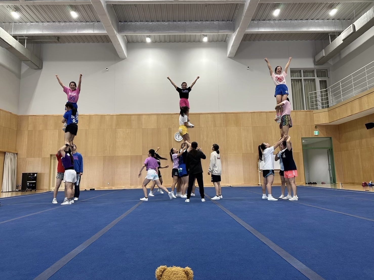日本女子体育大学は2022年に創立100周年を迎え、100周年記念館が完成し、チアリーディングの練習に使える綺麗で新しいフロアで練習する事ができています。