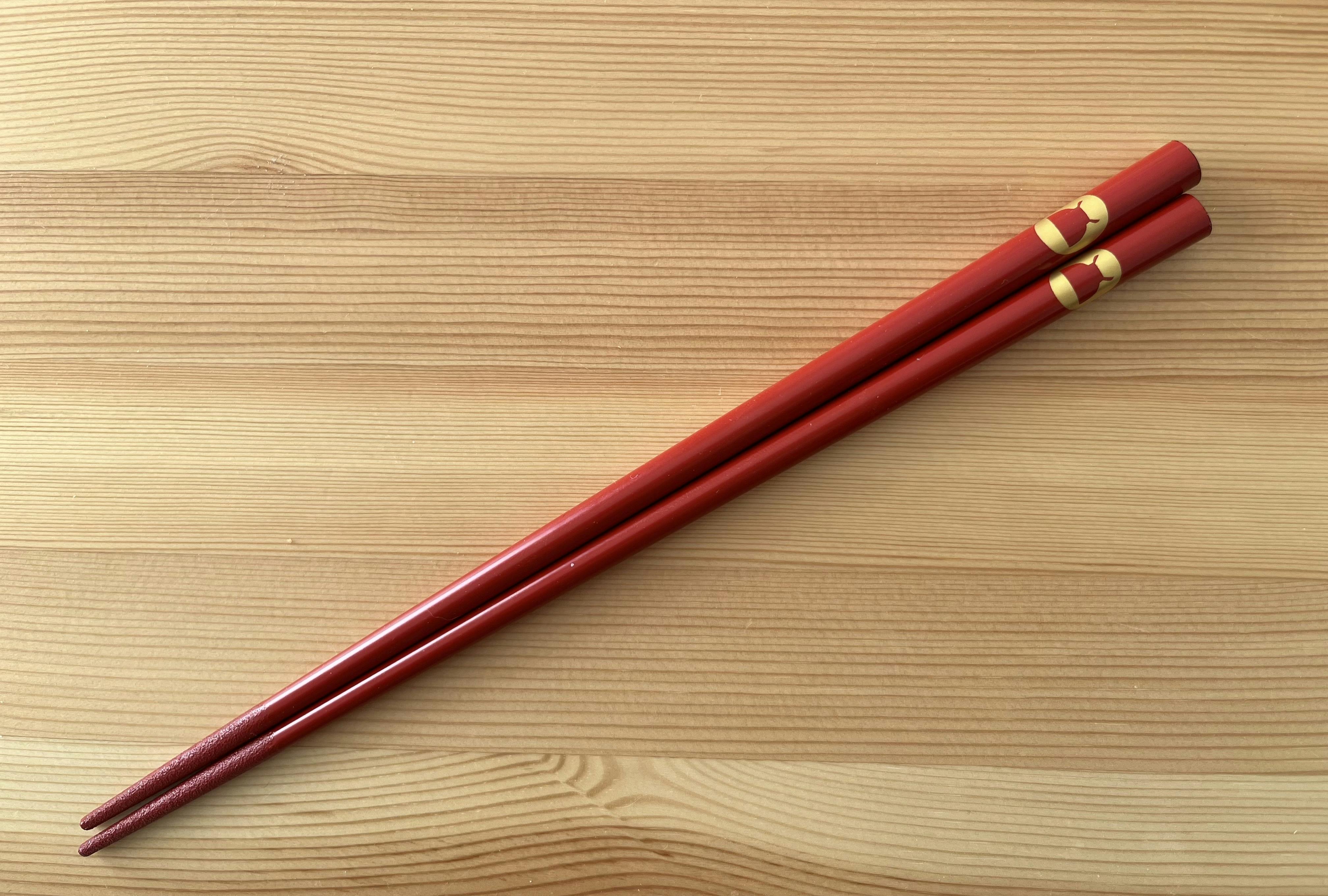 未だお箸の製作に見通しが立たないため、リターンのお箸は納期未定でございますが、震災から残っていたお箸に実際に描いてみました【おわんカバ】のロゴマーク蒔絵。