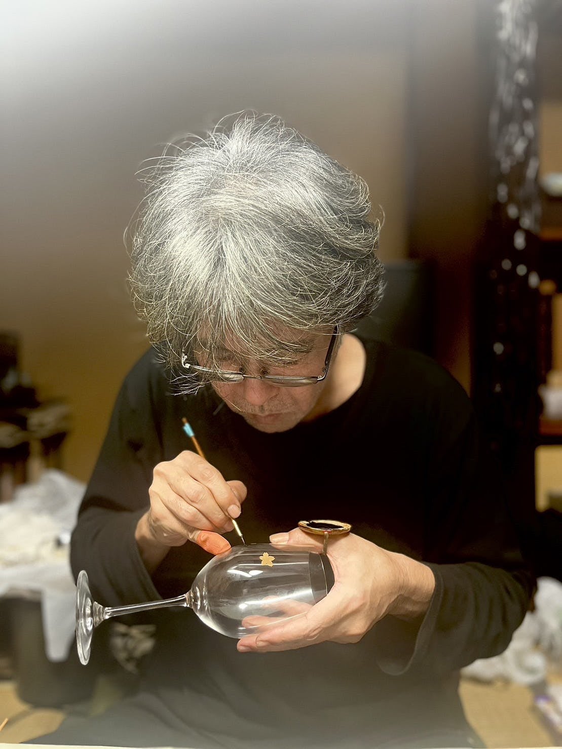 蒔絵師により手描きされた蒔絵ワイングラス