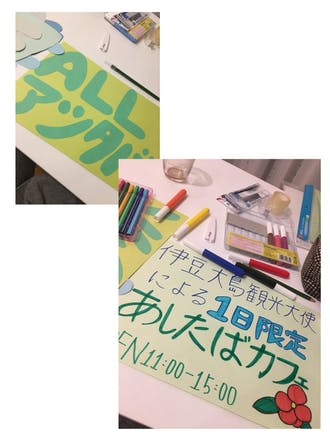 これは知人から内装の準備全然してなくね?とご指摘いただきまして、焦ってはじめました!手作り感満載でお恥ずかしいですが、少しでも伊豆大島を感じられる&楽しい雰囲気の店内にしたいので引き続き頑張って参ります。