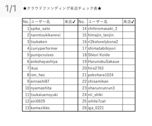 当日商品提供時にパトロンのチェックを行いたいと思いますので、万が一記載が漏れている場合はお手数ですがご連絡ください。