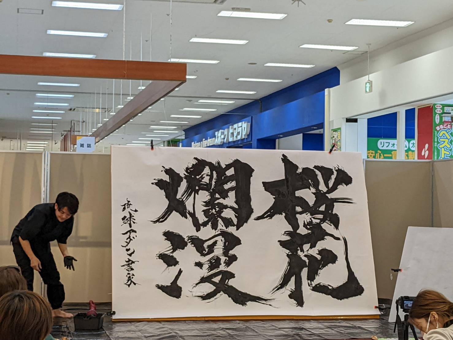 平成27年12月 名古屋、市田氏(書家)と植物筆三種(竹筆・藁筆・アダン筆)の展示会
