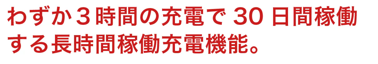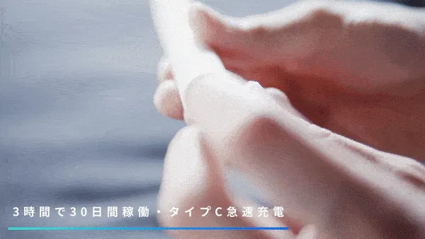 ミニマルソニックは長時間稼働を実現したタイプC急速充電を搭載。わずか3時間の充電だけで、なんと30日間も稼働します。