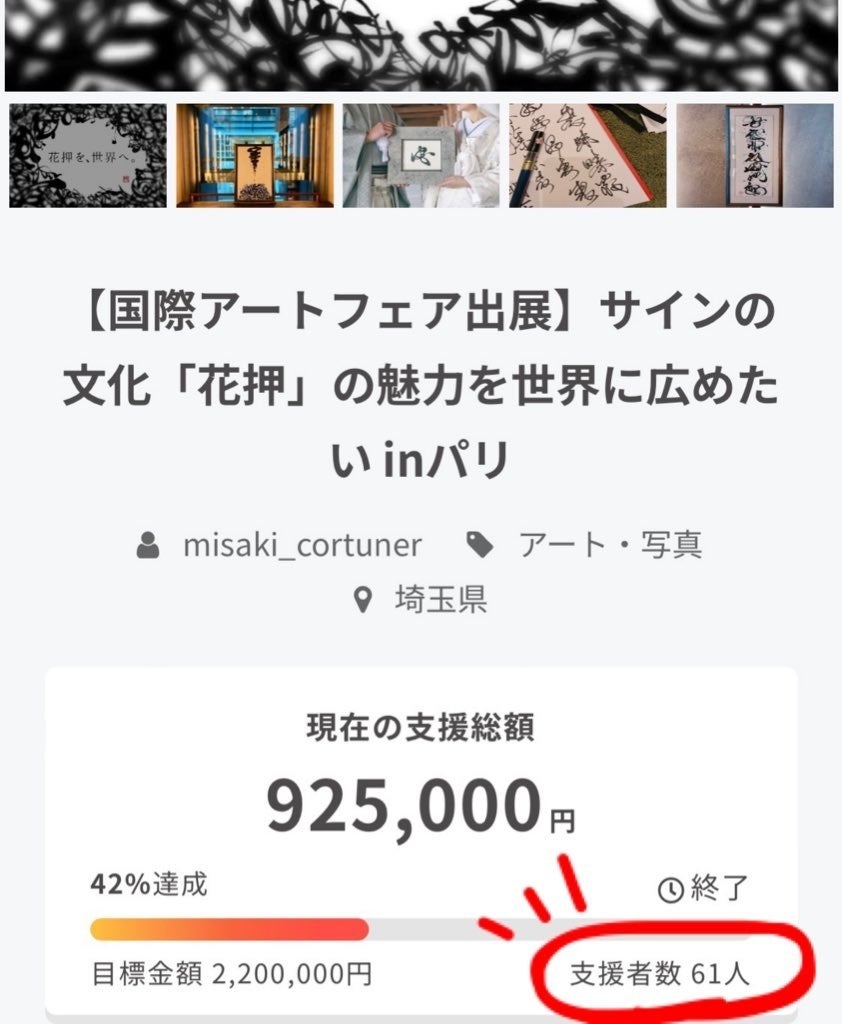 最終的には 61 名様よりご支援いただき総額が92万5000円となりました。