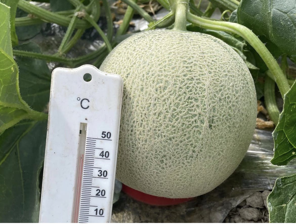 メロン栽培において1番大切なのは温度、湿度の管理です繊細な温度管理や灌水量の調整が必要なことから、高度な栽培管理が求められます河野FARMでは適度な湿度を保ち玉太りを良くします湿度がありすぎると割れやすく湿度がないと太りにくくなりますそして1番大事な温度管理昼と夜の寒暖差でメロンに適度なストレスを与えることによりメロンの糖度が乗り甘みの強いメロンが出来ます