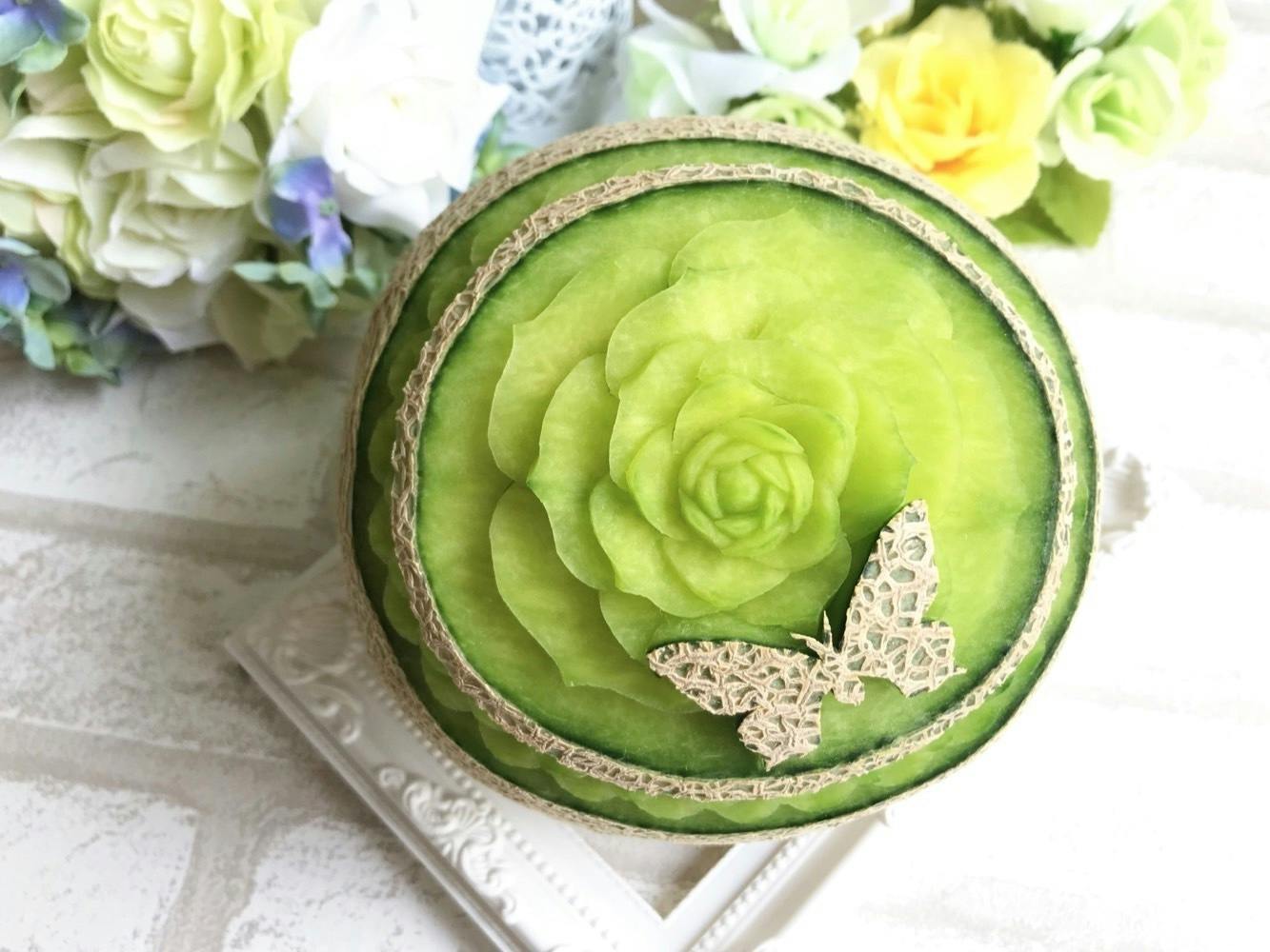 そして皆様に喜んで欲しくフルーツカット彫刻を使い世界に1つだけのメロンもお作り致します