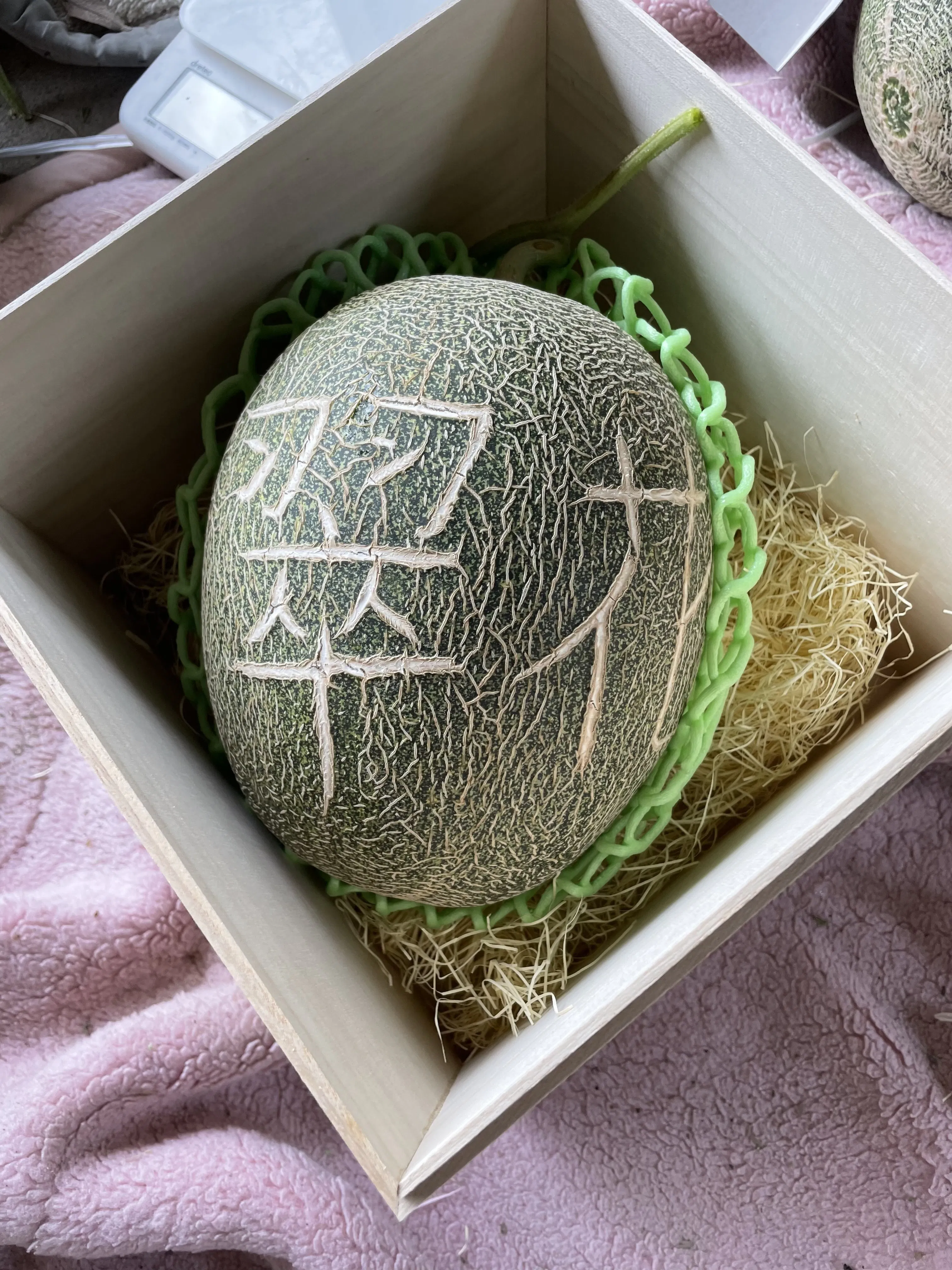 河野FARMの肥後グリーンメロンを使ったカービングメロンです🍈文字入りや柄など最高級のカービングメロンです!!彫る内容やデザインに関しては事前にメールにてヒアリングさせて頂きます。