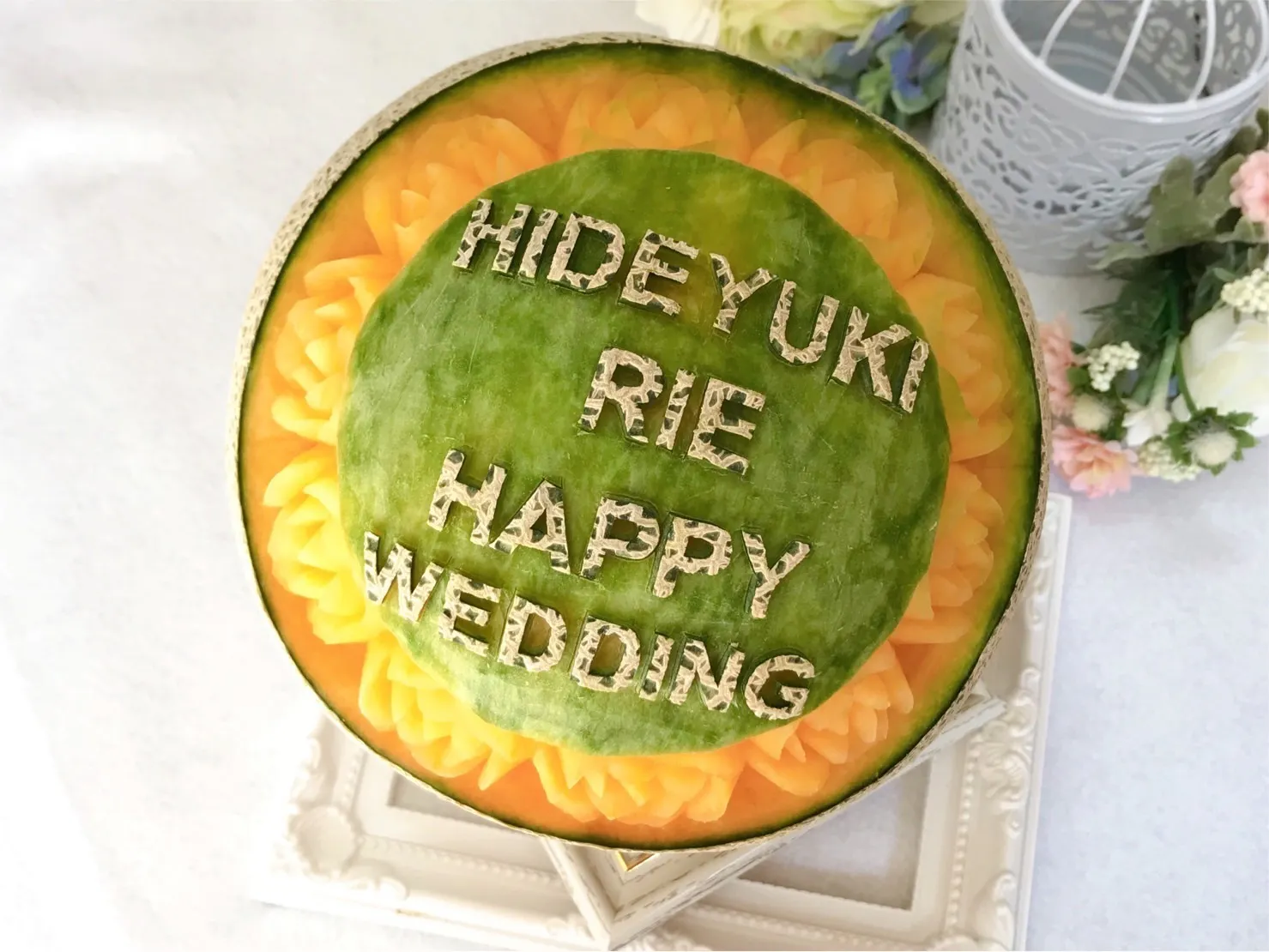 そして皆様に喜んで欲しくフルーツカット彫刻を使い世界に1つだけのメロンもお作り致します