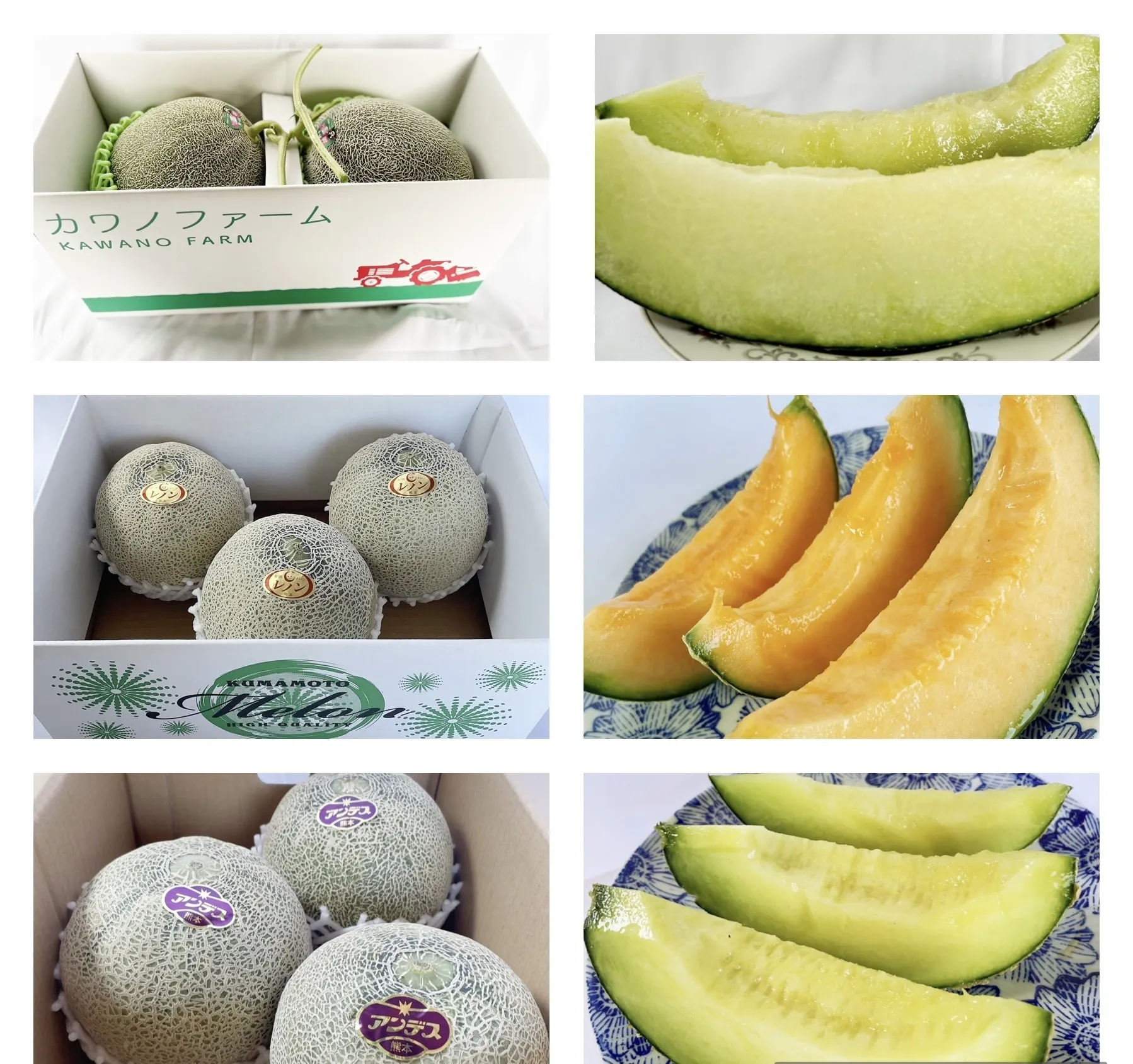 肥後グリーンメロン、赤肉のレノンメロン、アンデスメロンのセット