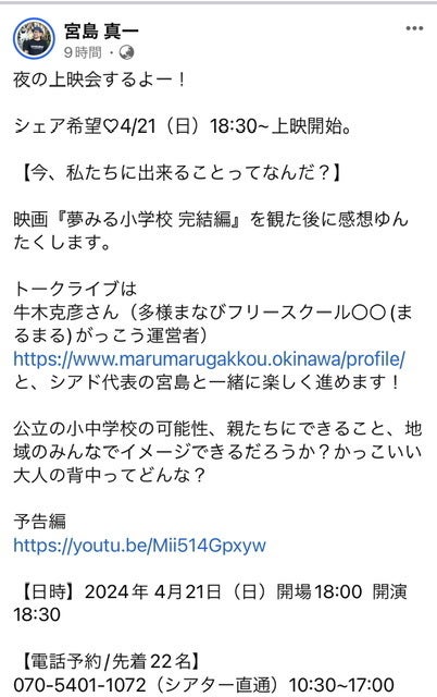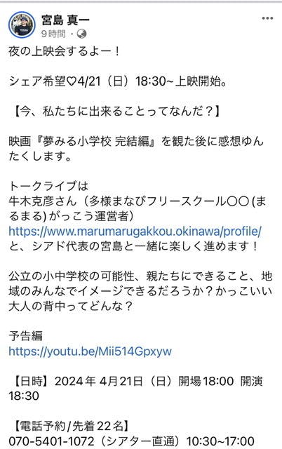 なっ、なんと!代表宮島さんが上映会の告知をしてくださいました。