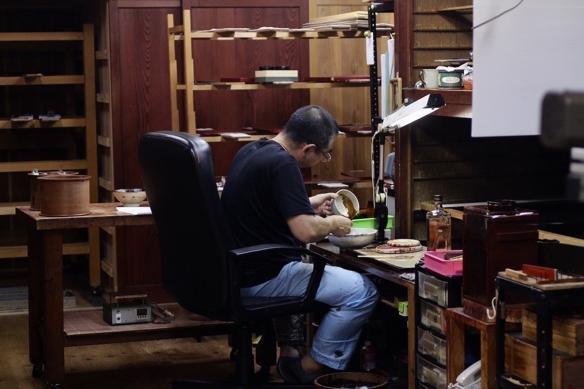 弊社の工房では、創業以来の家訓である「職人は人格崇高たるべし」 「漆・技・意匠は最上たるべし」...を実践するために、熟練の分業による工房での一貫生産を守りながら、材料・技・意匠において「史上最良のものづくり」をテーマにしています。