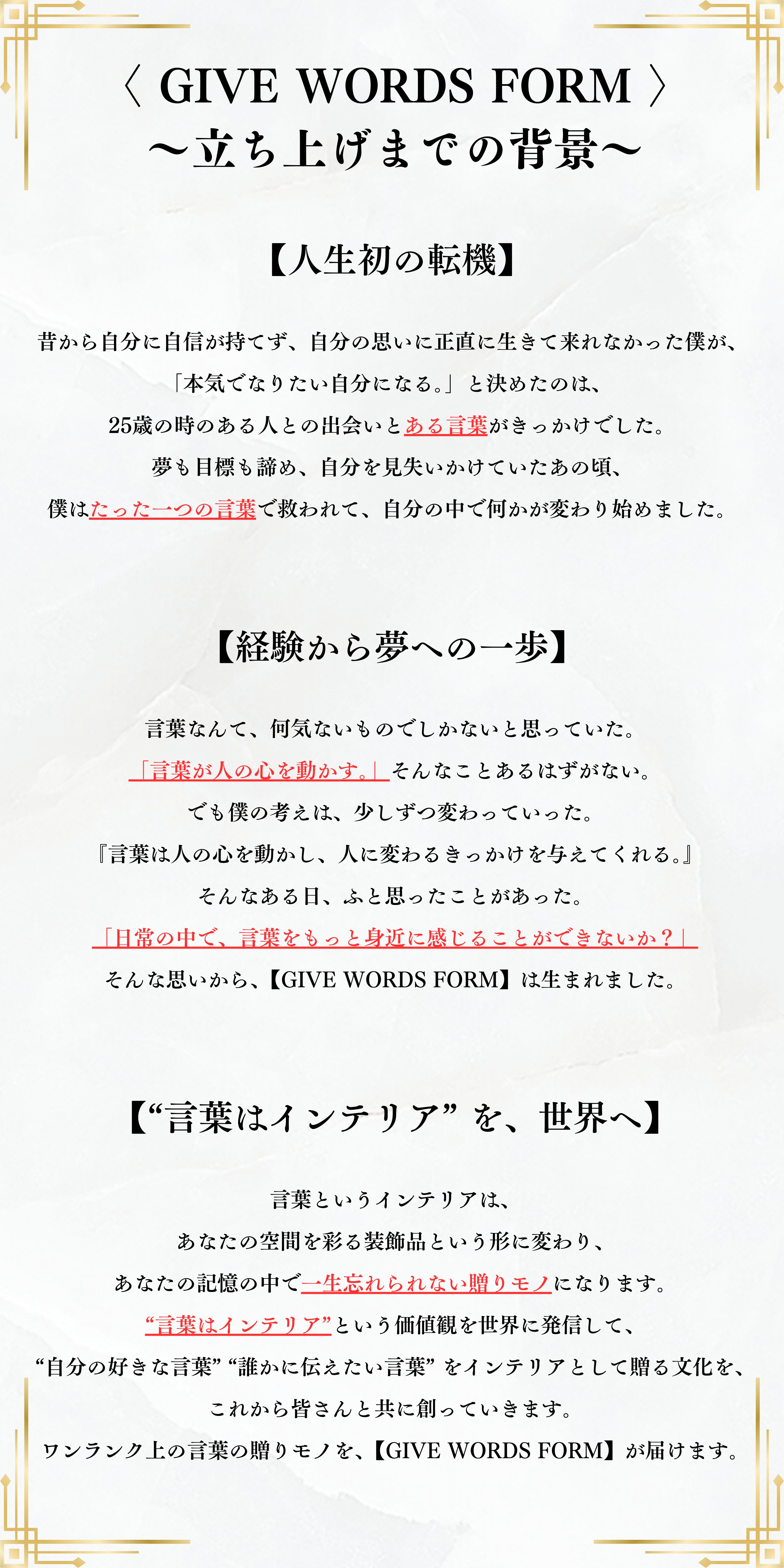 皆さまのご支援を糧に、【GIVE WORDS FORM】は