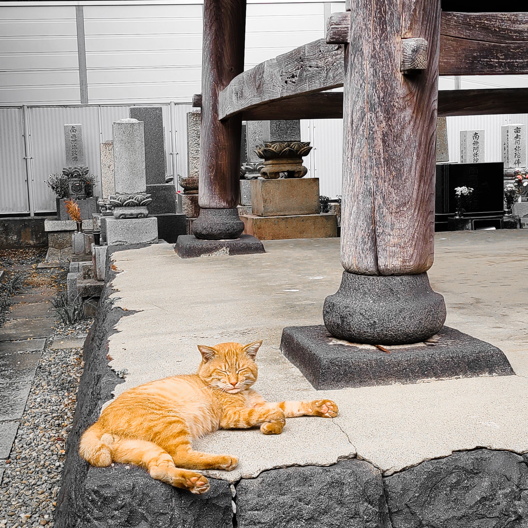 被災以前、鐘楼堂では地域猫がよく息抜きしていました
