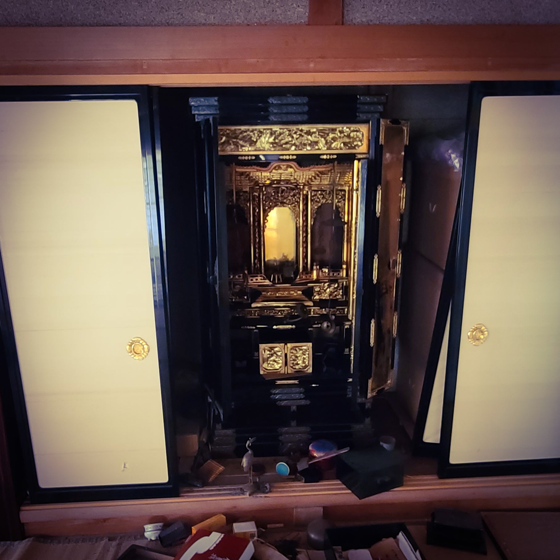 さて、本日は解体を決めたご門徒さん宅の仏壇仕舞いに行ってまいりました。震災後何件も仏壇仕舞いのお勤めをさせていただいております。先祖代々守られてきた仏壇を仕舞う、悔しくも寂しい思いです。