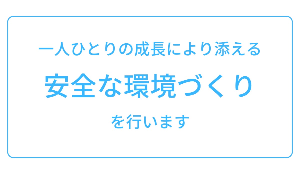 ニュースになるような痛ましい事故が二度と起こる事がないよう、毎日保育を振り返り安心安全で学びに溢れた園であり続けることが使命と感じております。そのためには時代に沿った新しいアイデアの導入、新しい風を吹き込む必要性があると痛感し、現場保育士ならではの様々な観点、視点から、充実した保育をアップデートして参ります。