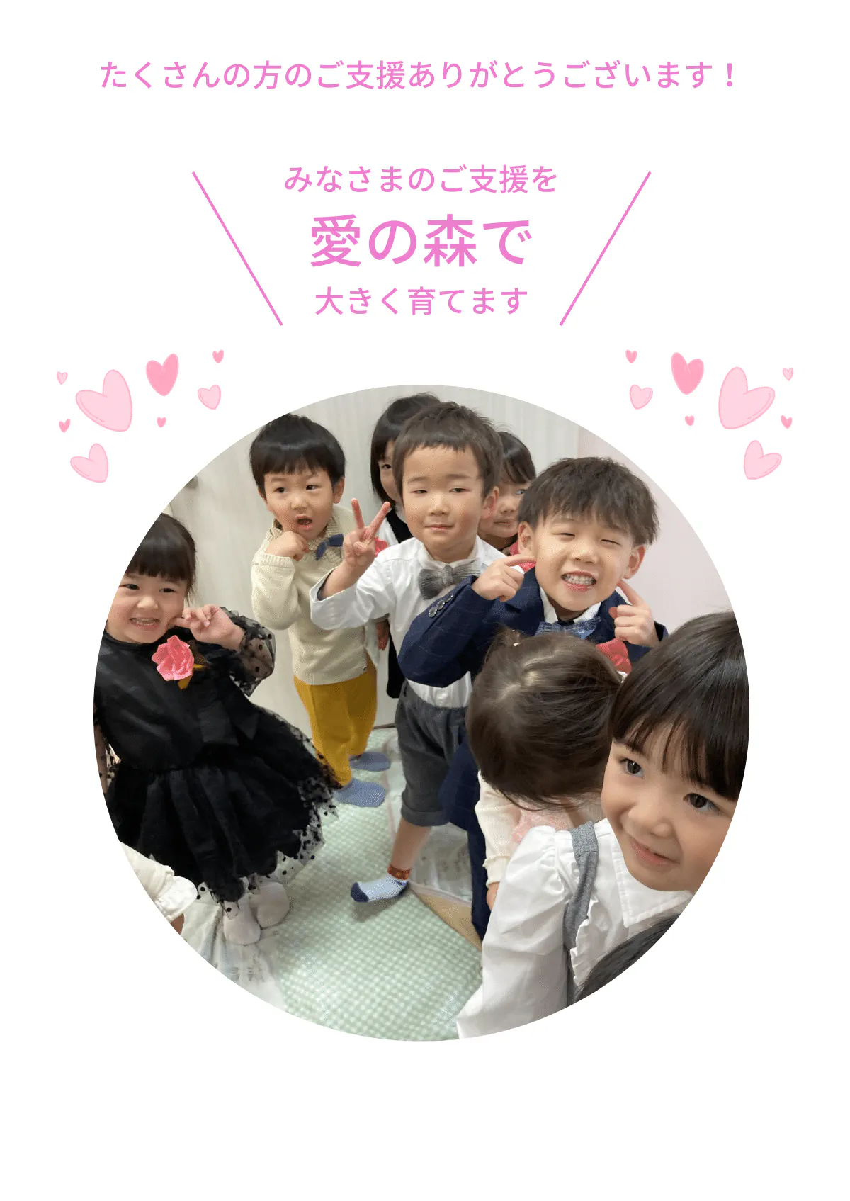 皆様からいただいたご支援を、園児・保護者・保育従事者のたくさんの笑顔につなげます。