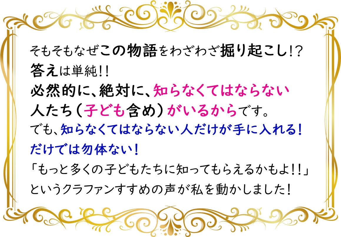 世界の名作やおとぎ話と同じくらい印象に残るお話だということを知ってほしい!