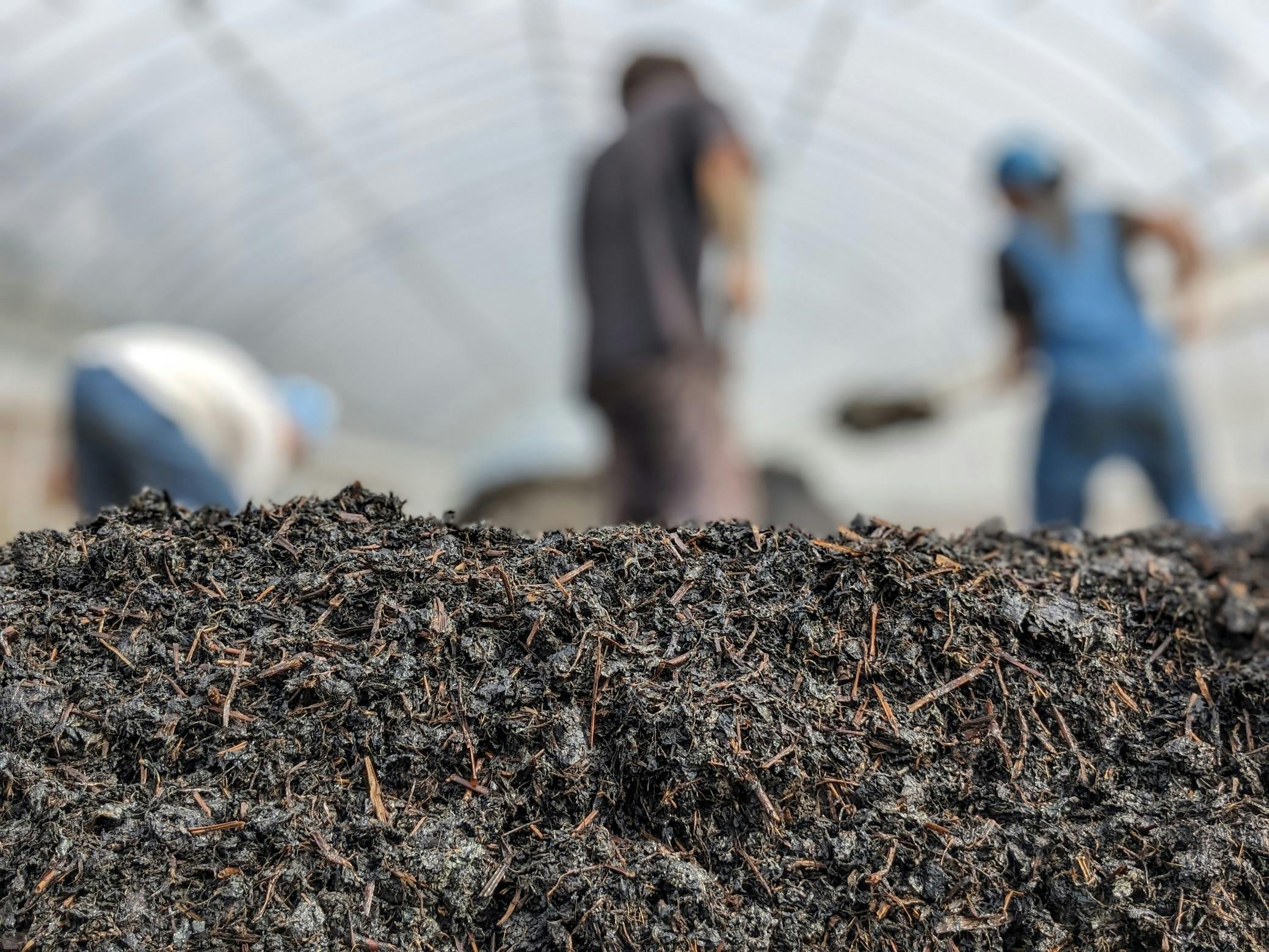 正藍染めの主な材料である蒅(すくも)は、藍師から購入しています。藍師は、藍の葉を育て、刈り取り、乾燥させたのちに約60日間以上発酵させ(今回使わせていただく筑波の蒅は、120日間も発酵させているそうです)、その間、水を打ったり切り返したりと管理を徹底し、ようやく蒅が完成します。この貴重な蒅を作れる藍師も現在ではごく少数となり、よって染師が良質の蒅を手に入れることも難しくなってきています。