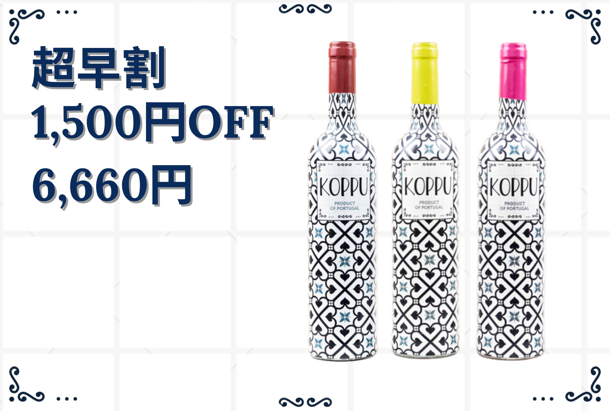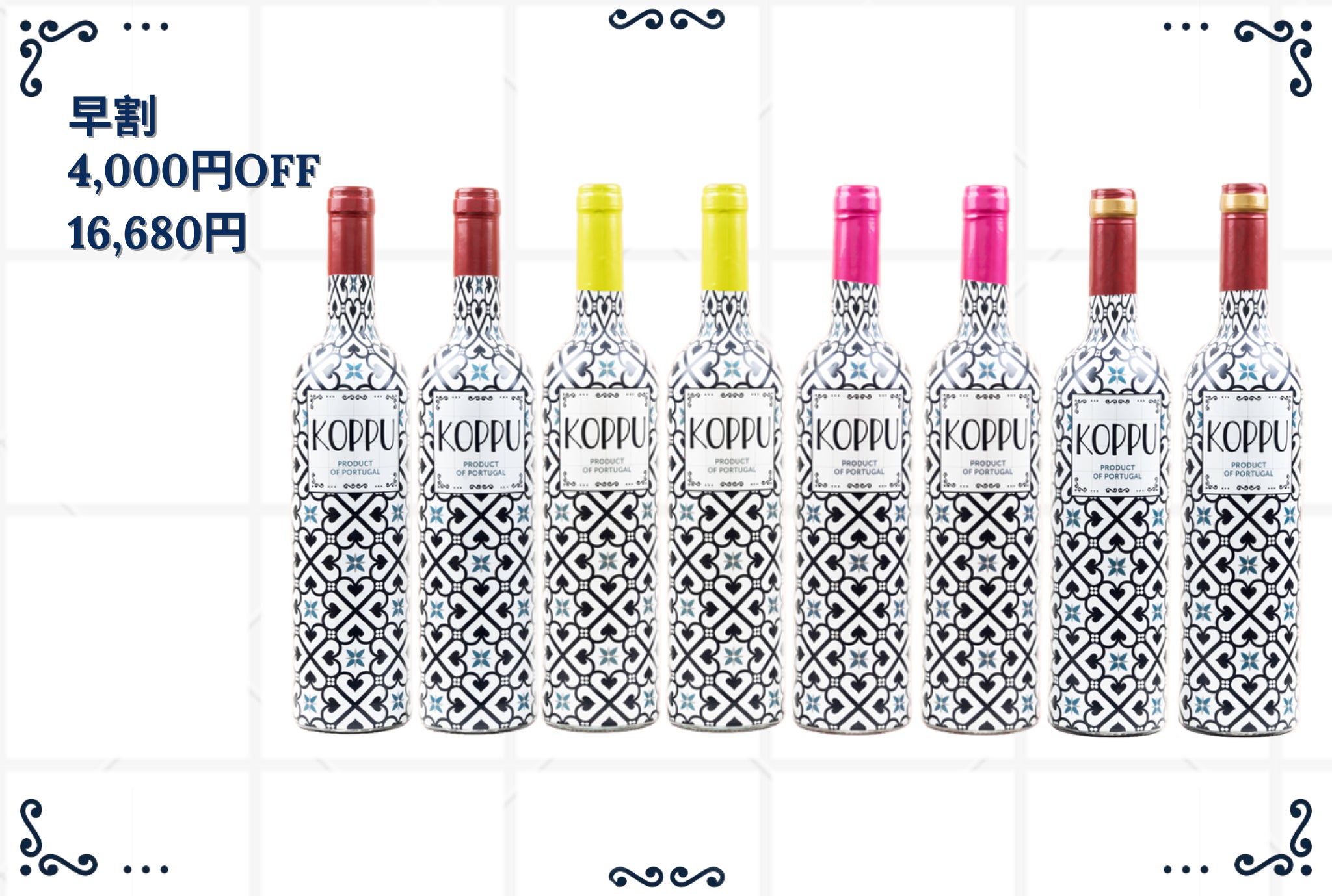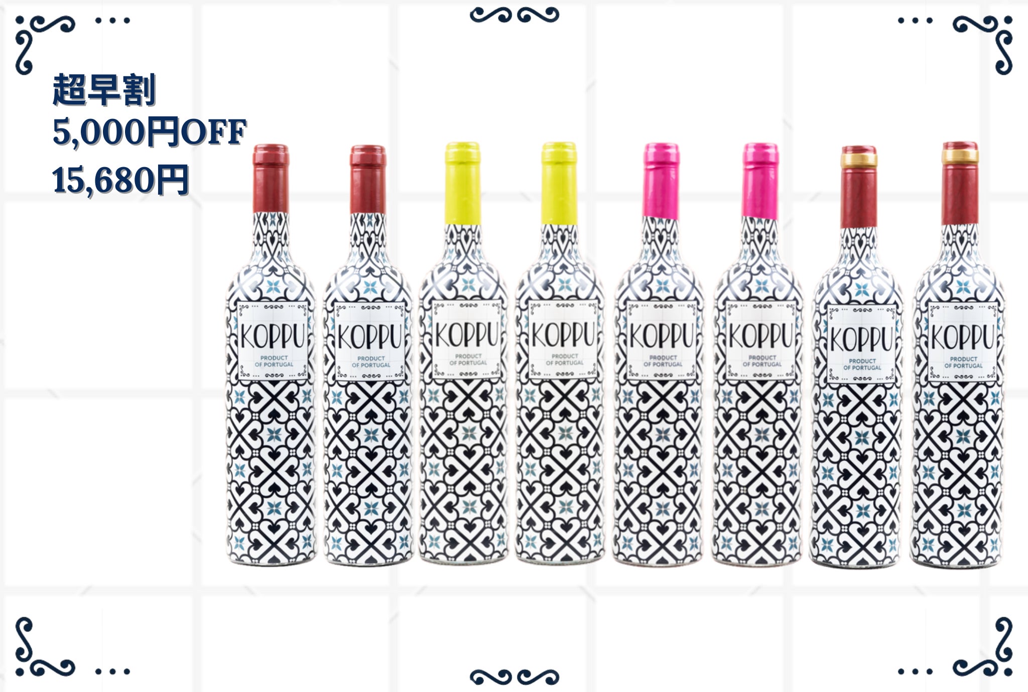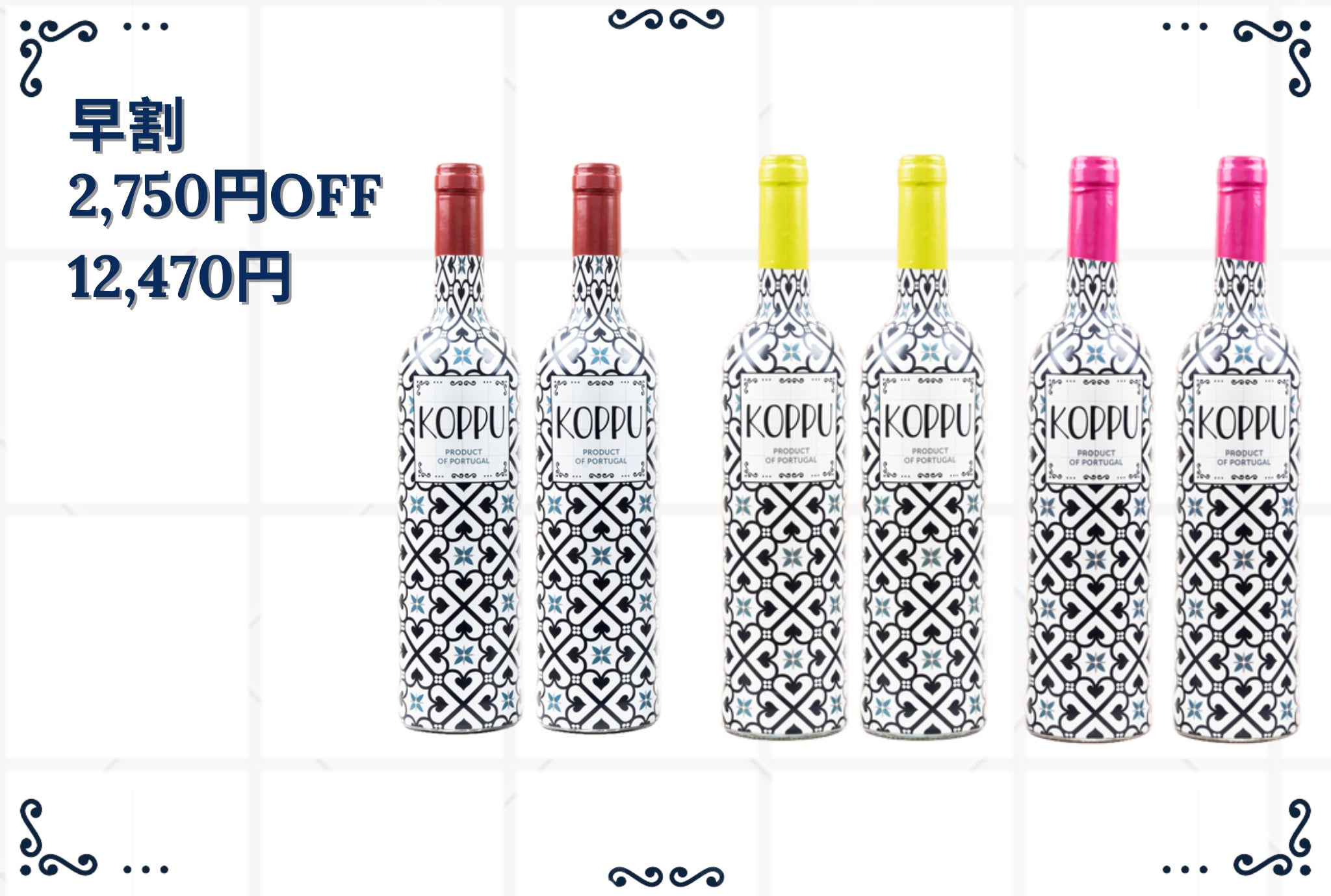 隠れたワイン大国ポルトガル。ワイン造りに欠かせない3S(Sun,Sea,Sand)が揃い、国際的に注目と期待が高まっています。その真価と魅力ある伝統文化を伝播するために造られた至福のワイン【KOPPU】シリーズ。見た目もオシャレなポルトガルタイル柄ボトルで、「ポルトガルらしさ」が手に取った瞬間から味わいに至るまで堪能していただけます。